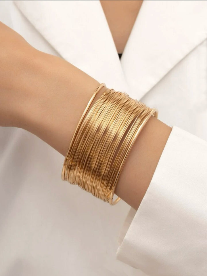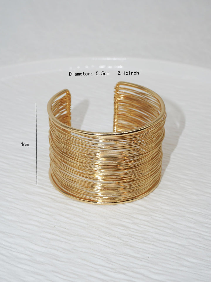 Shein - European And American Classic Trendy Luxury Women's Fashion 4.0cm Wide Gold-color Iron Wire Wrapped Iron Alloy Bangle