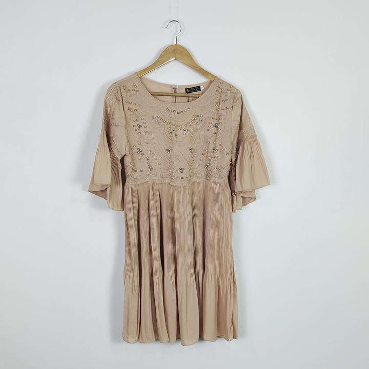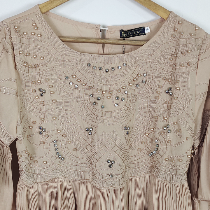 - Neck Details: Embroidery & Pearls