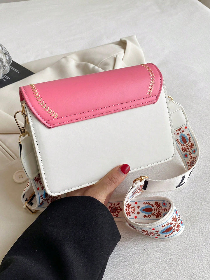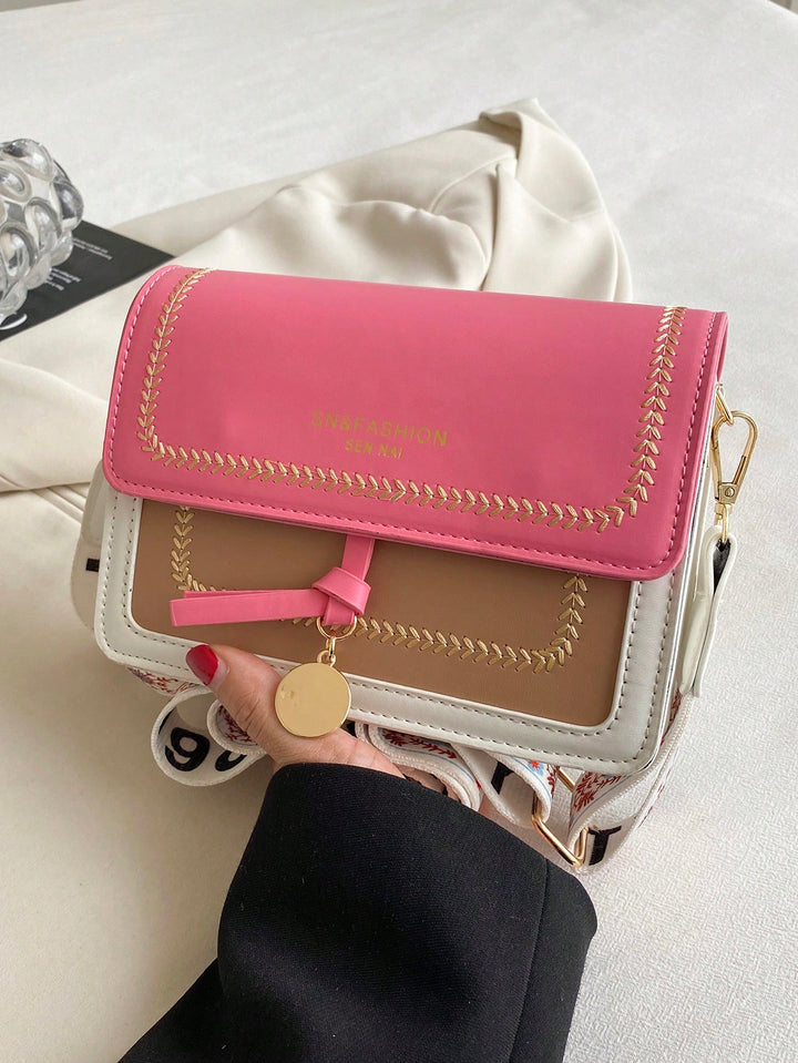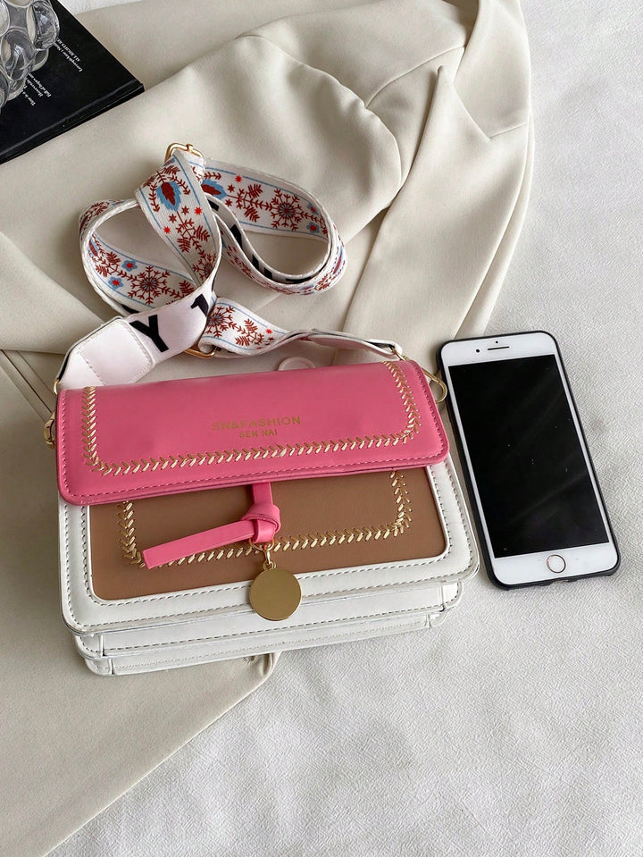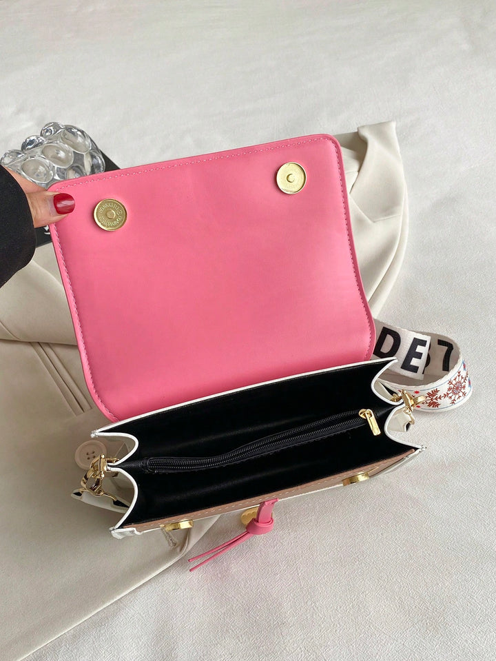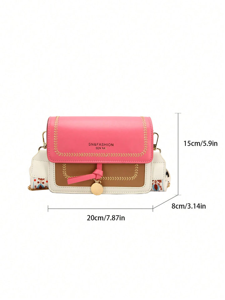 Shein - Fashionable Bag For Women, Versatile New Crossbody Bag, Casual, Contrasting Color, Small Square Bag, Wide Shoulder Strap, For Party Date School Outdoor Gift