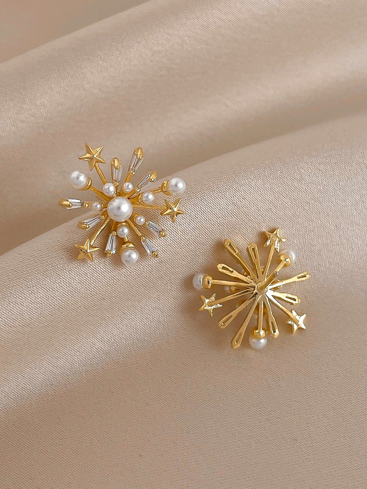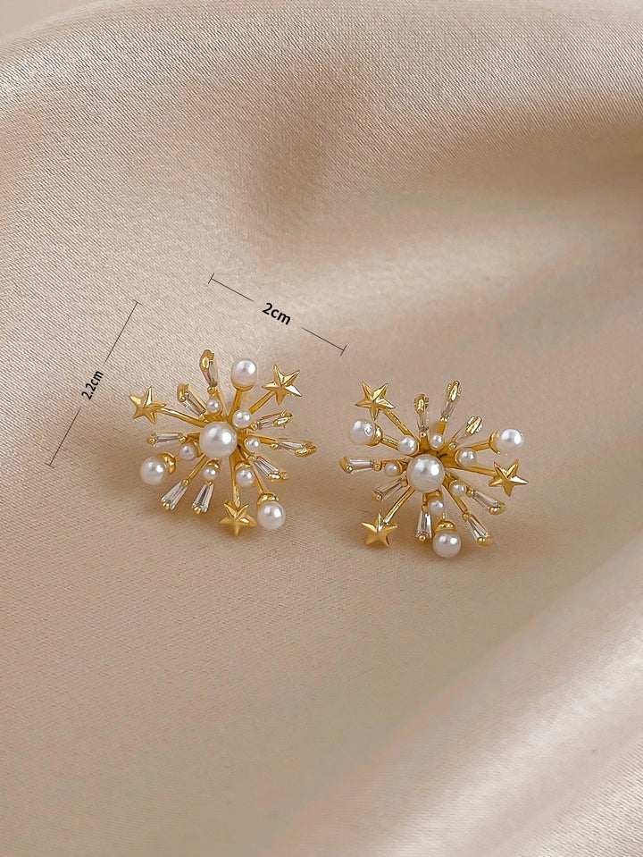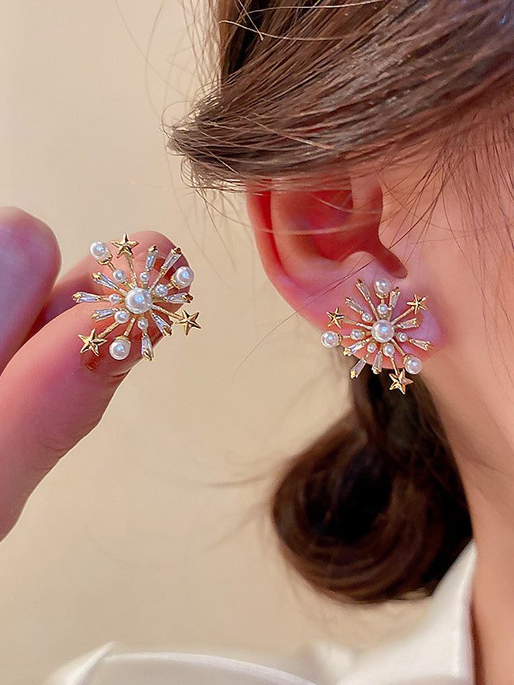 Shein - Faux Pearl & Cubic Zirconia Decor Stud Earrings
