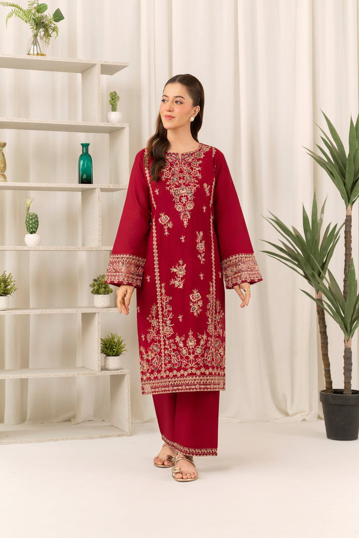 Flutterby Stitched 2 Piece Summer Collection-Berry - Maroon