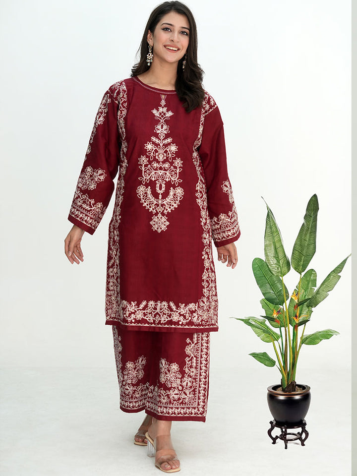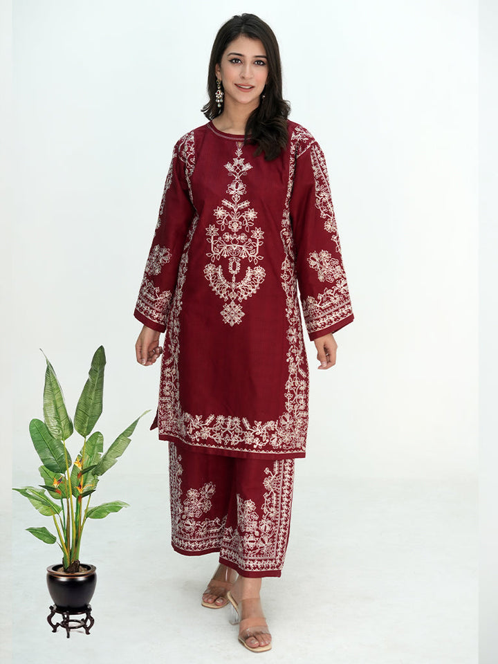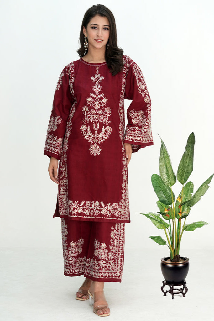 Flutterby Stitched 2 Piece Summer Collection-Zille M - Maroon