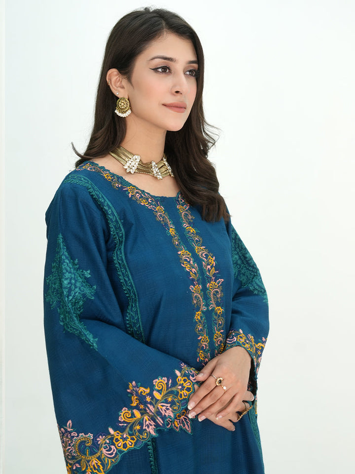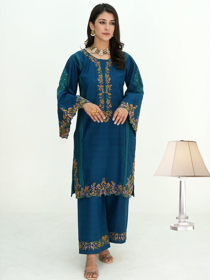 Description : Two Piece Women Winter Thick Cotton suit embroidered Shirt & Trouser Suit for formal & casual occasions