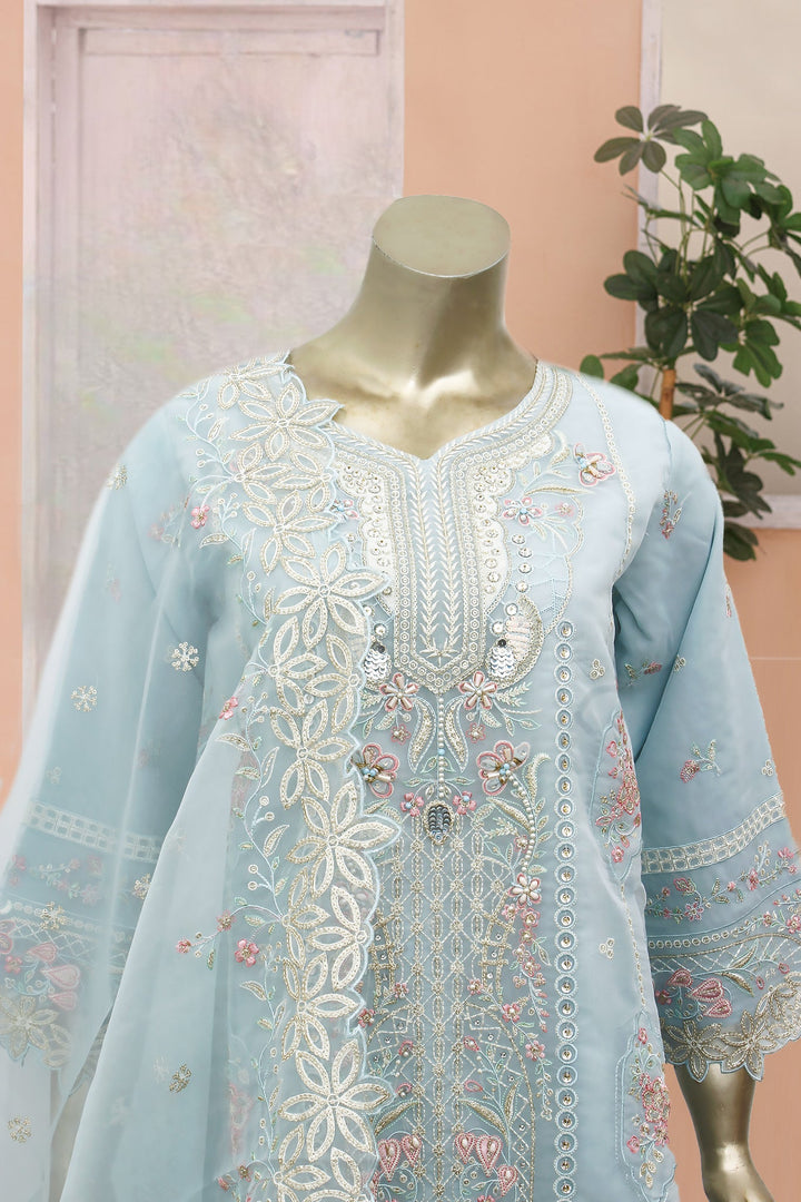 Gira By Bin Saeed Stitched 3 Piece Luxury Emb Chiffon Collection'2024-RTS-979-Sky Blue