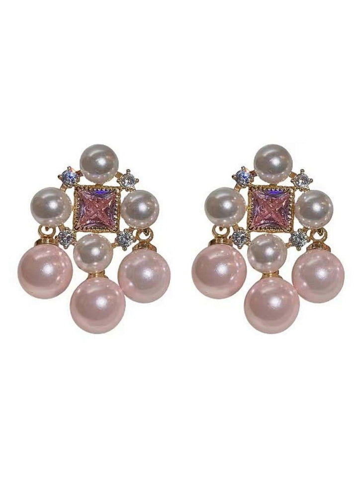 Shein - Glamorous Zinc Alloy Cubic Zirconia & Faux Pearl Decor Stud Earrings For Women For Daily Decoration