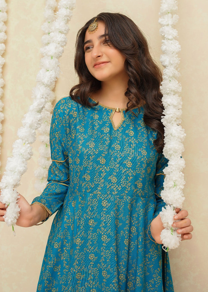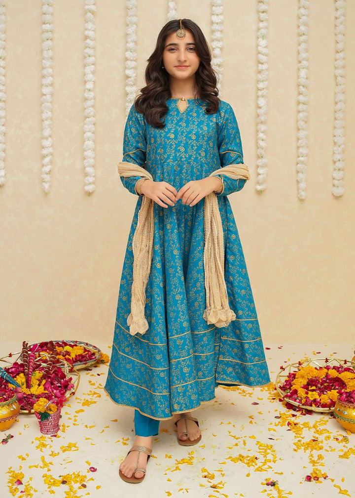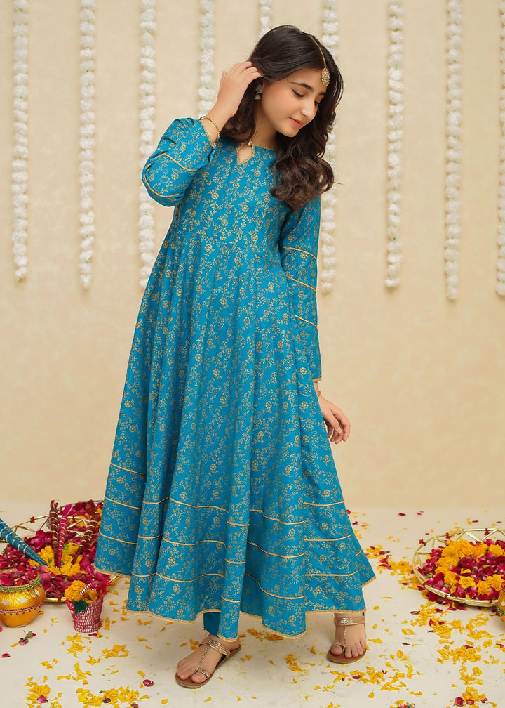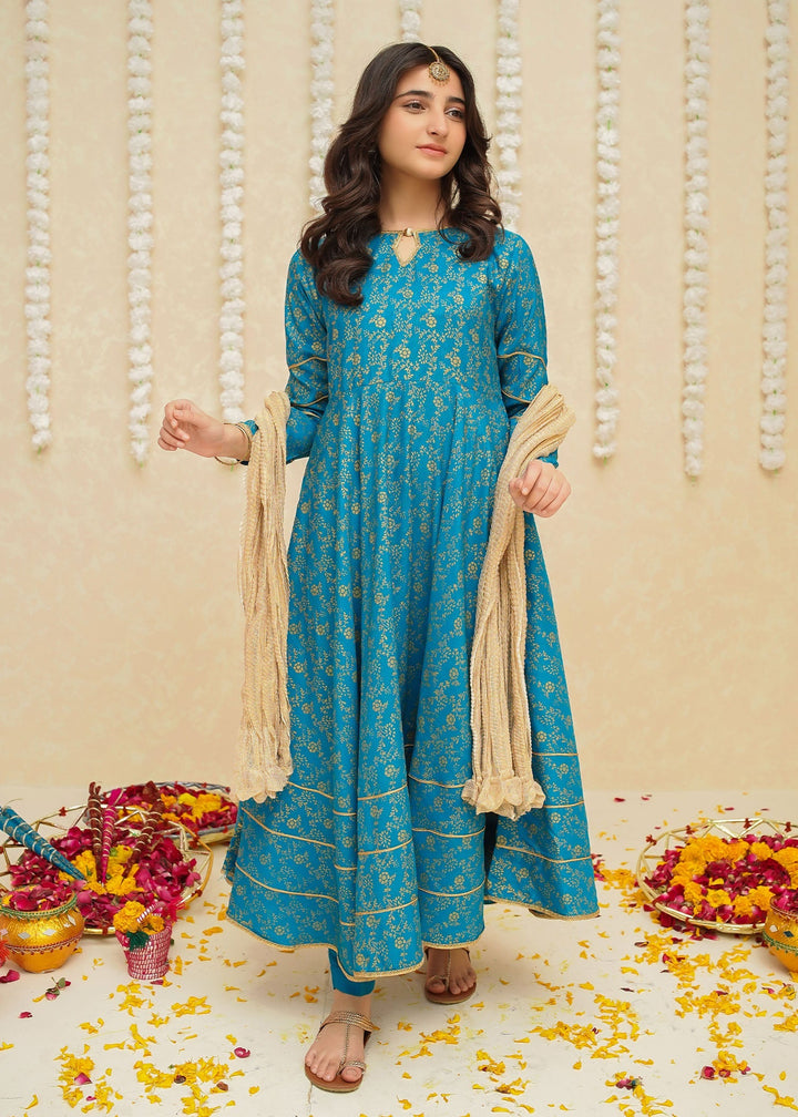 Gulzar By Modest Stitched 3 Piece Formals Collection'2025-8915-Blue Frock