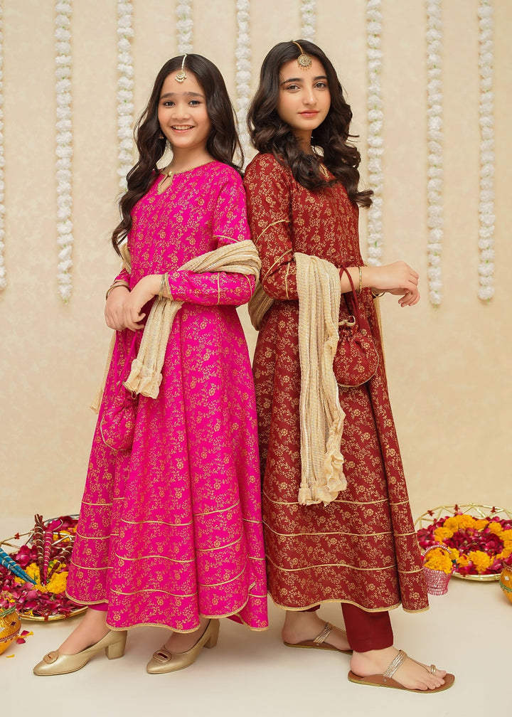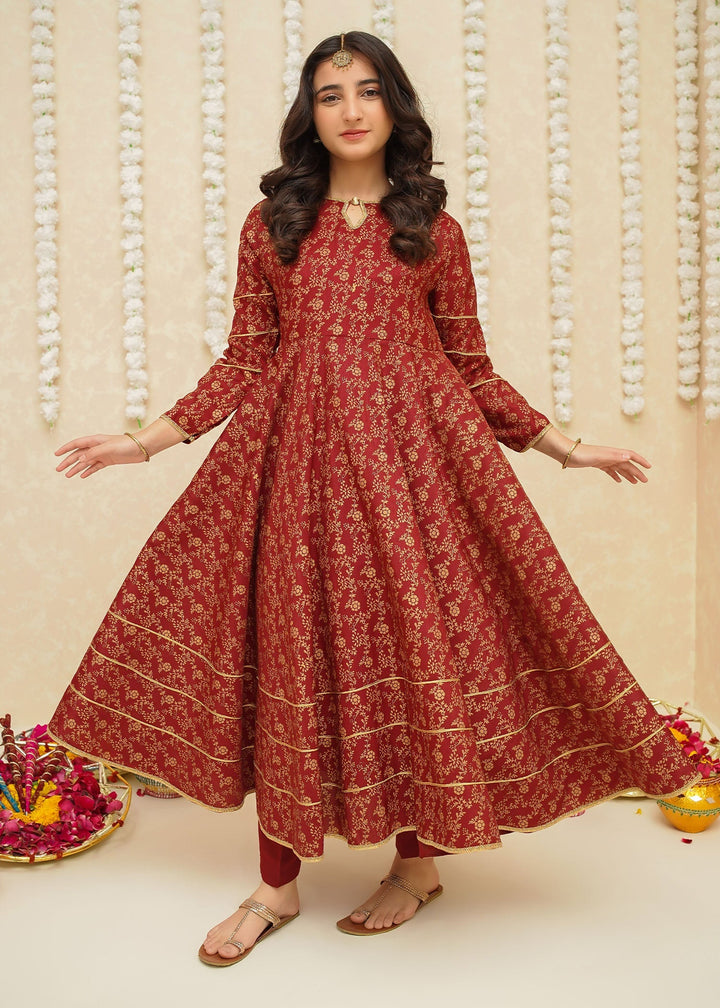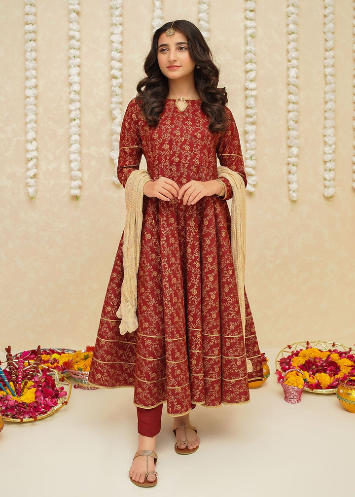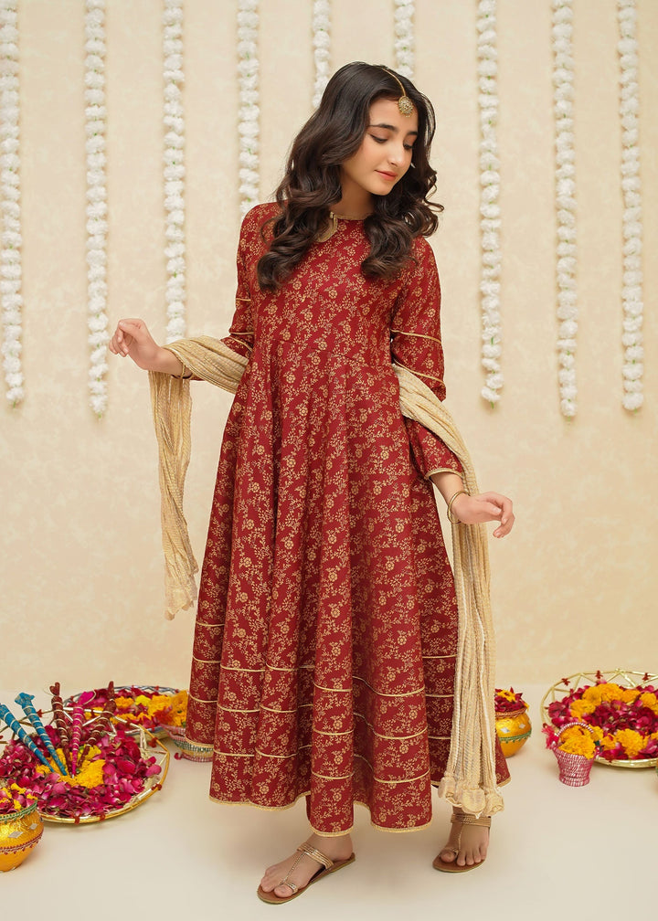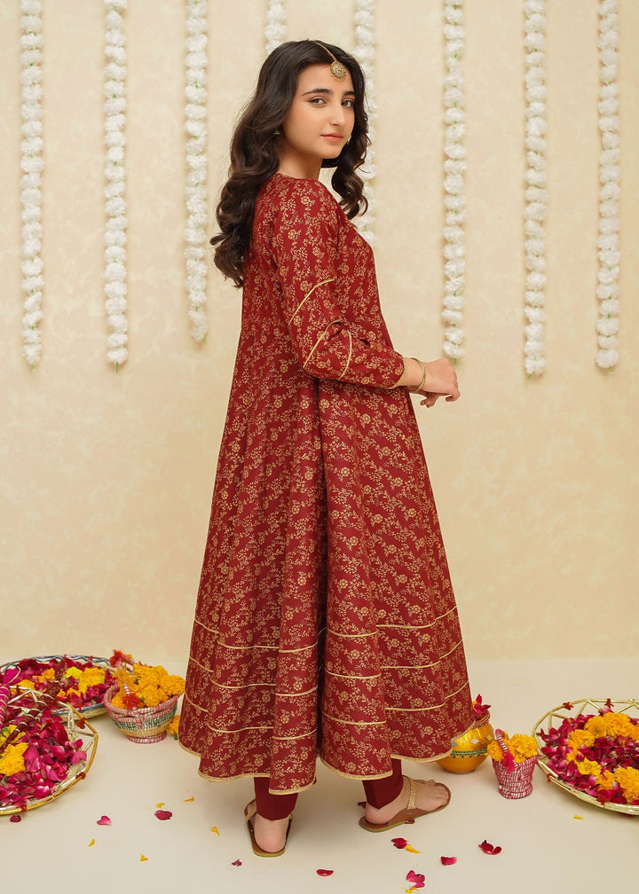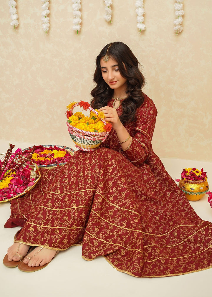Gulzar By Modest Stitched 3 Piece Formals Collection'2025-8915-Maroon Frock