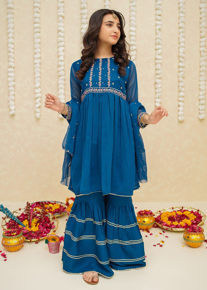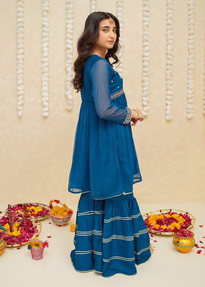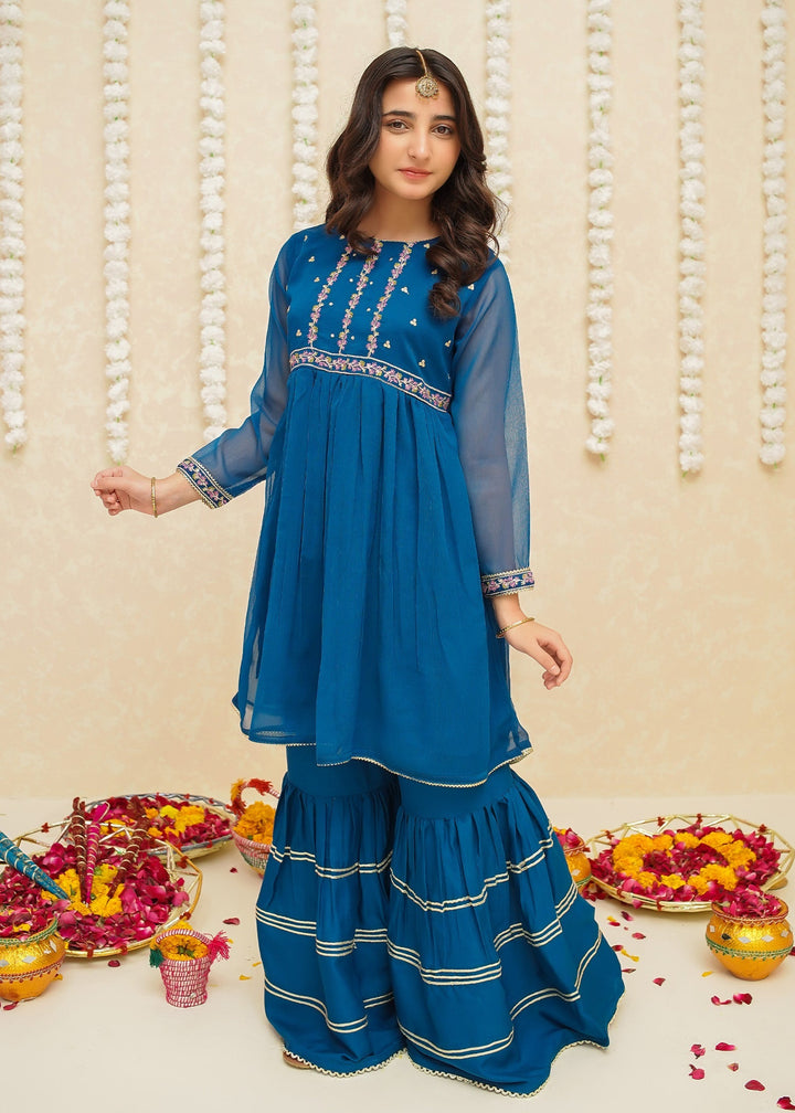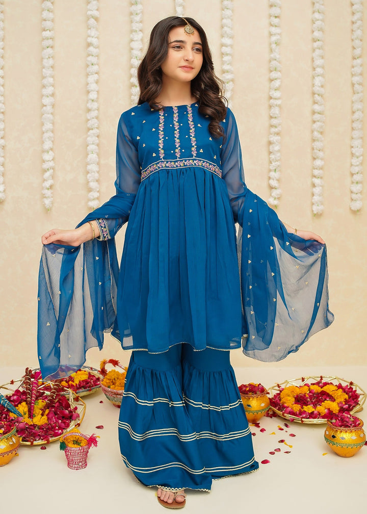 Gulzar By Modest Stitched 3 Piece Formals Collection'2025-9245-Blue