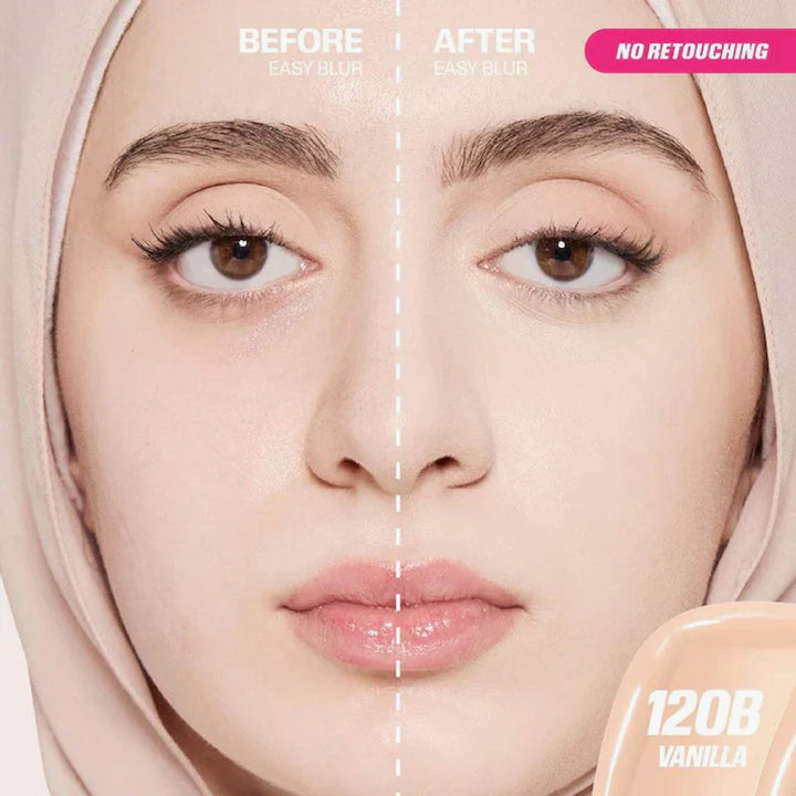 Huda Beauty Easy Blur Natural Airbrush Foundation is an innovative foundation that blends seamlessly into the skin, creating an effortlessly smooth, natural finish. This liquid foundation provides a buildable medium to full coverage that conceals imperfections while maintaining a weightless feel. The Niacinamide-infused formula brightens and improves skin texture over time, offering a radiant glow that lasts all day. With its long-wear, humidity-resistant formula, this foundation is perfect for every occasion, delivering a soft-focus effect for that Instagram-worthy complexion.