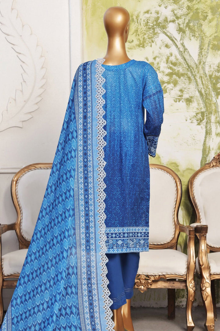 HZ Printkari Stitched 3 Piece Digital Printed & Emb Chikankari Lawn Collection'2024-PCL-401