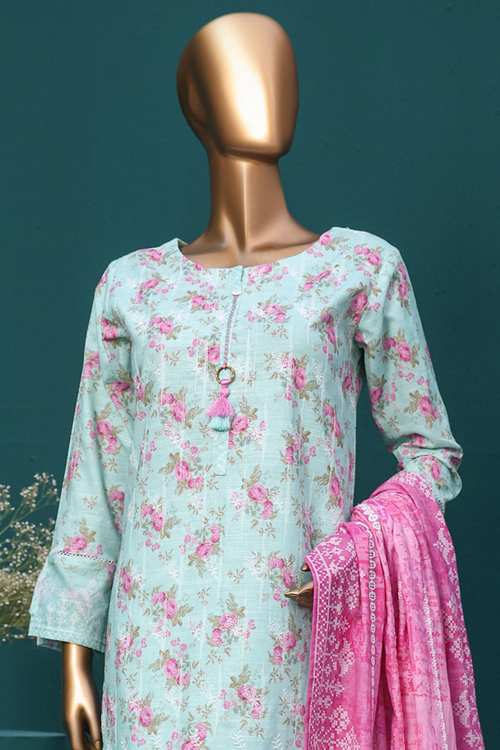 - Digital Printed Embroidered Chikankari Khaddar Shirt.