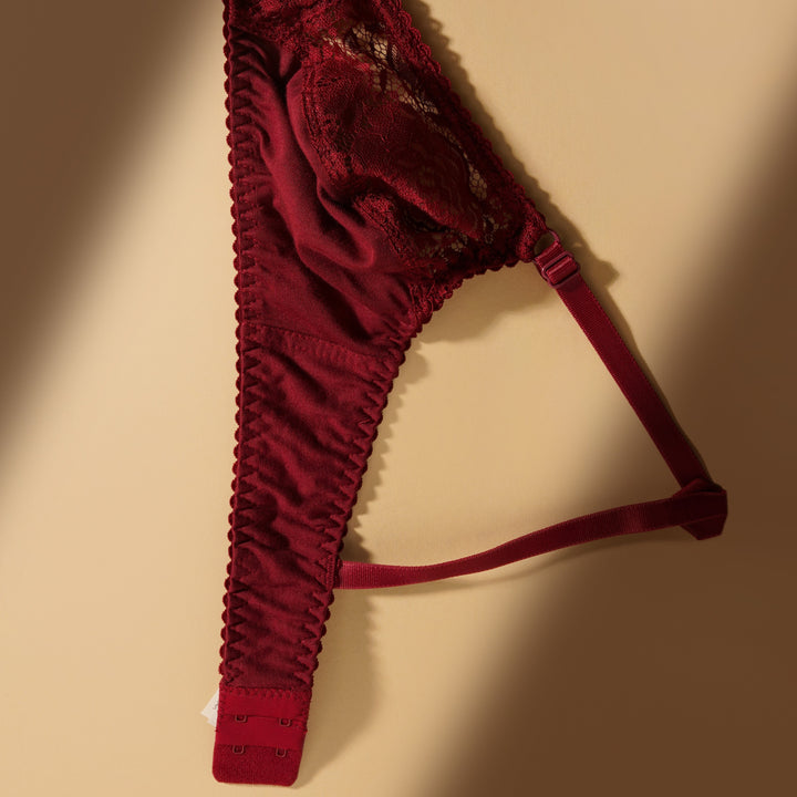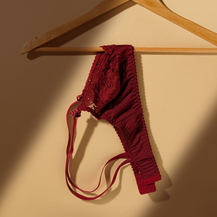 Intimage, Half Lace Cotton Unpadded Bra, Maroon
