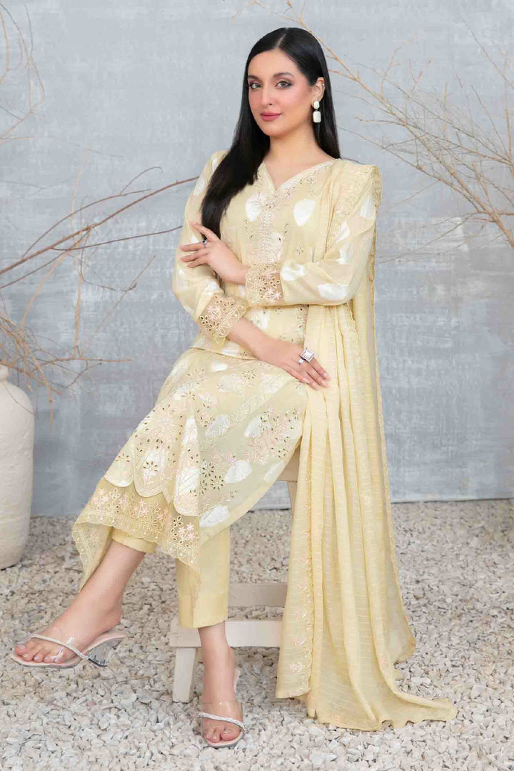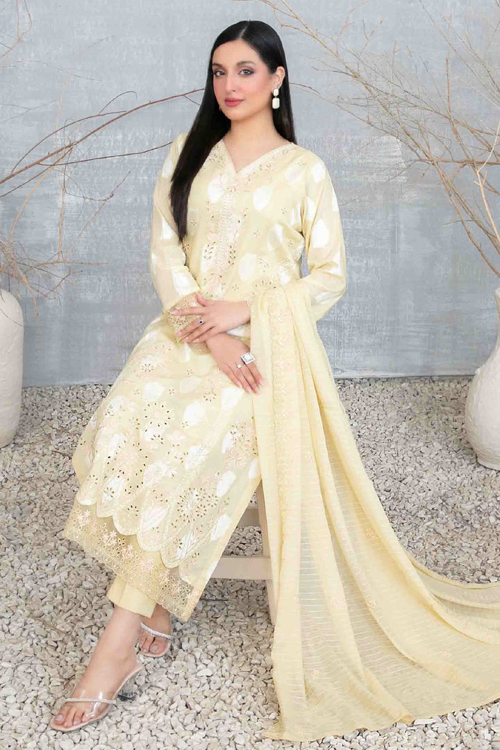 Izara By Tawakkal Unstitched 3 Piece Emb Lawn Collection-D-1095 - Cream