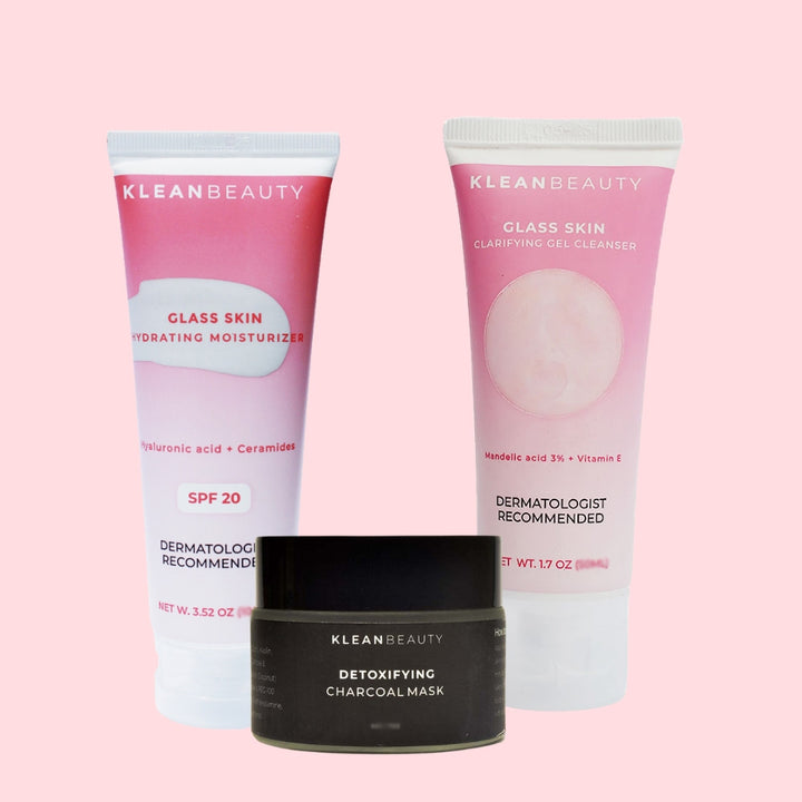 Klean Beauty - Glass Skin Trio (50Ml Moisturizer + 50Ml Facewash + 50G Charcoal Mask)