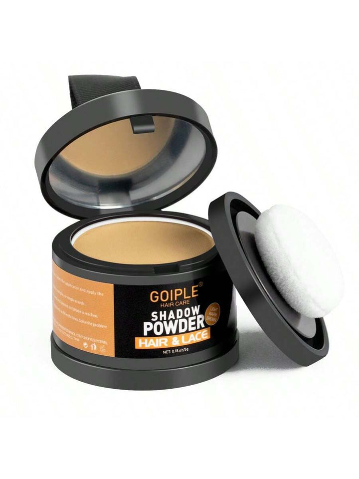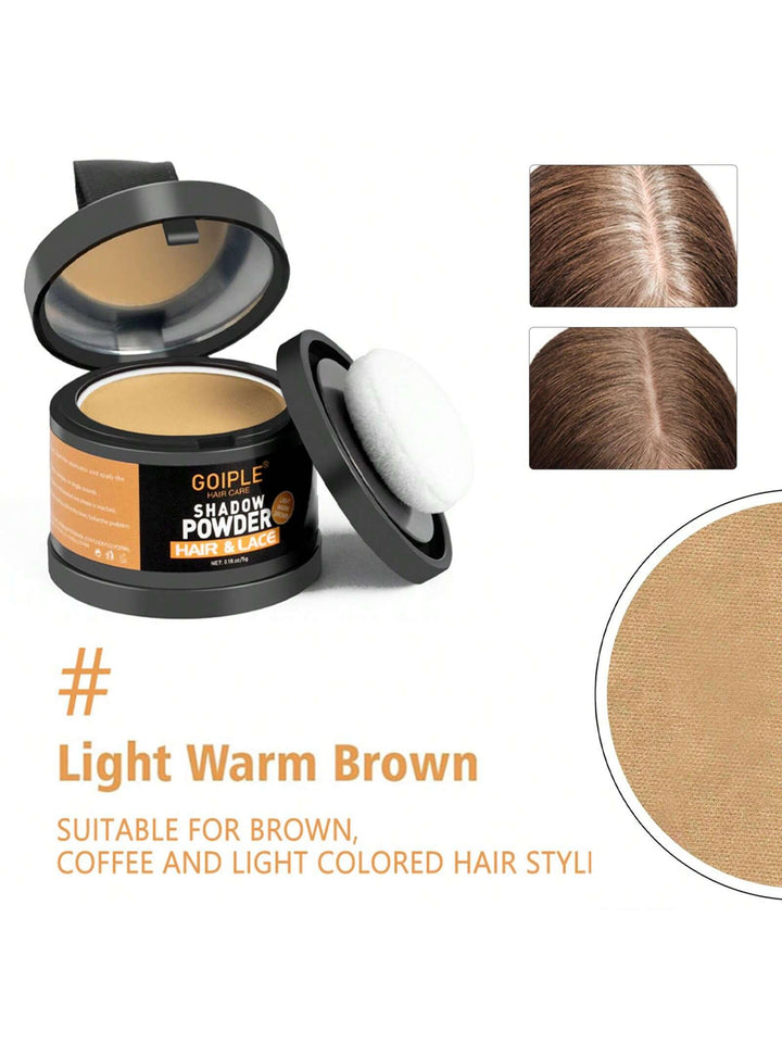 Shein - Light Warm Brown Root Cover Up Powder, Instantly Hair Coverage Hairline Powder Shadow Powder For Fills In Thinning Hairline With Soft Sponge Applicator Puff , Matching Mirror Makeup Tool - Beige
