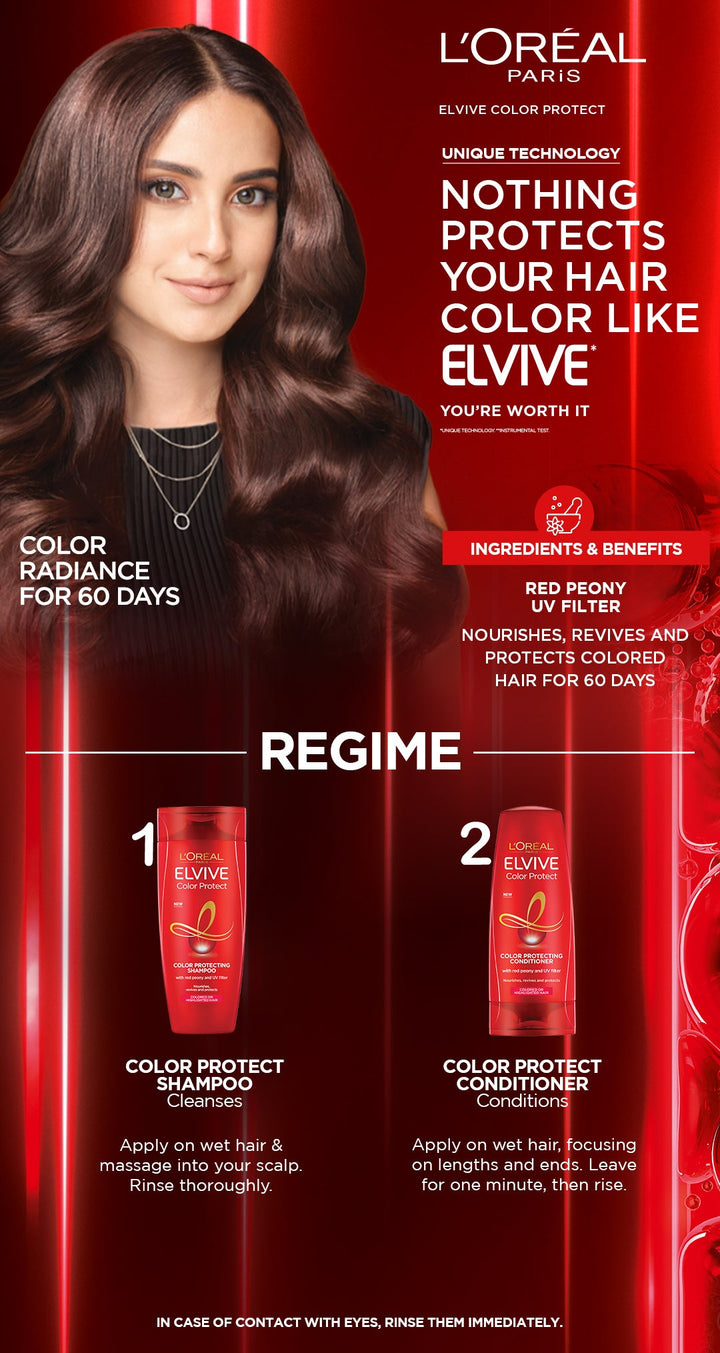 The Colour Protect formula with UV filter- Light Reflecting System combines an active nourishing ingredient and filters for color treated hair. Dry hair, meet your match. L’Oréal Paris offers hair conditioners for every concern and hair type. Whether you’re looking to moisturize dry hair, want a conditioner for colored hair, or want to help repair damaged hair with a deep conditioner, we have the hair conditioner and complementary shampoo that best fits your needs!