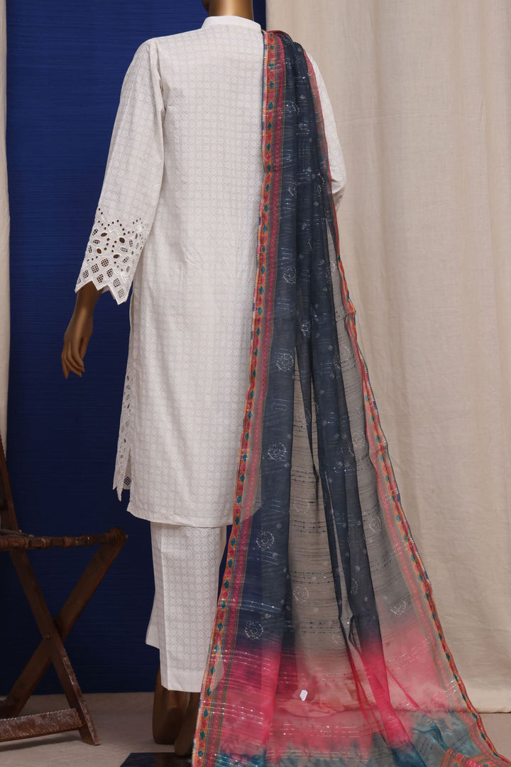 Luckhnovi kari by Bin Saeed Stitched 3 Piece Emb Lawn Collection'2023-CMSTF-016-White
