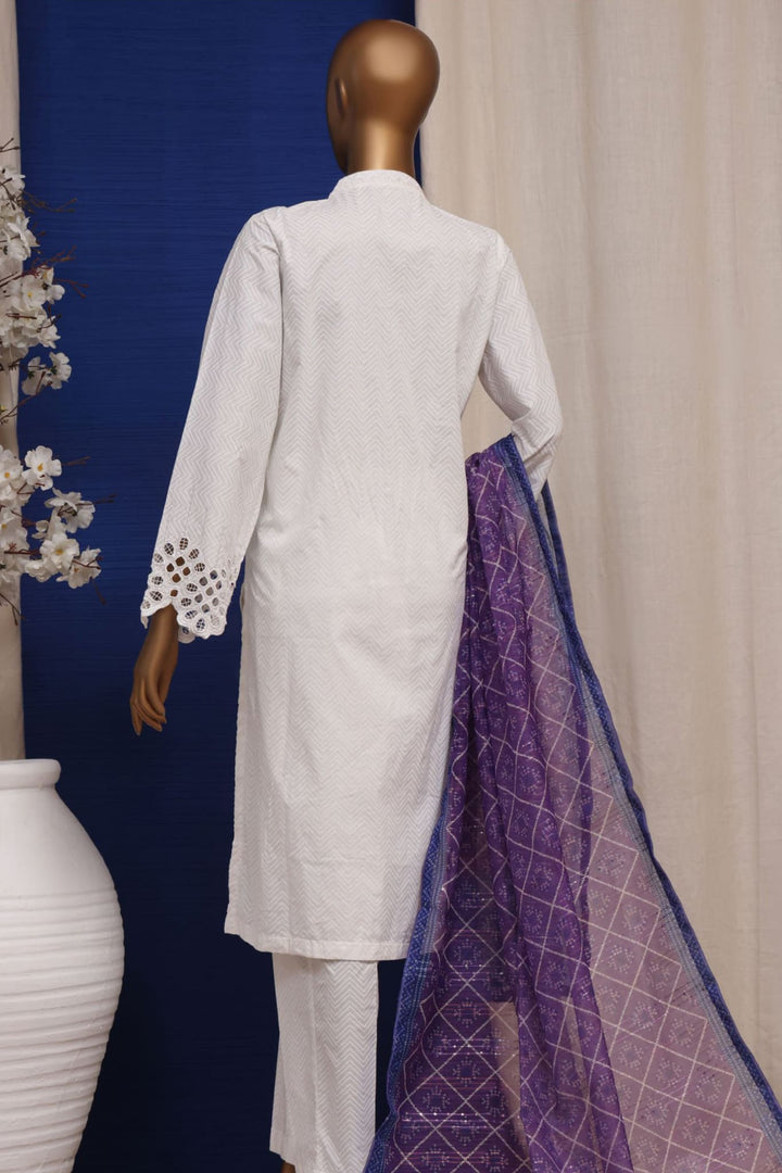 Luckhnovi kari by Bin Saeed Stitched 3 Piece Emb Lawn Collection'2023-CMSTF-022-B-White