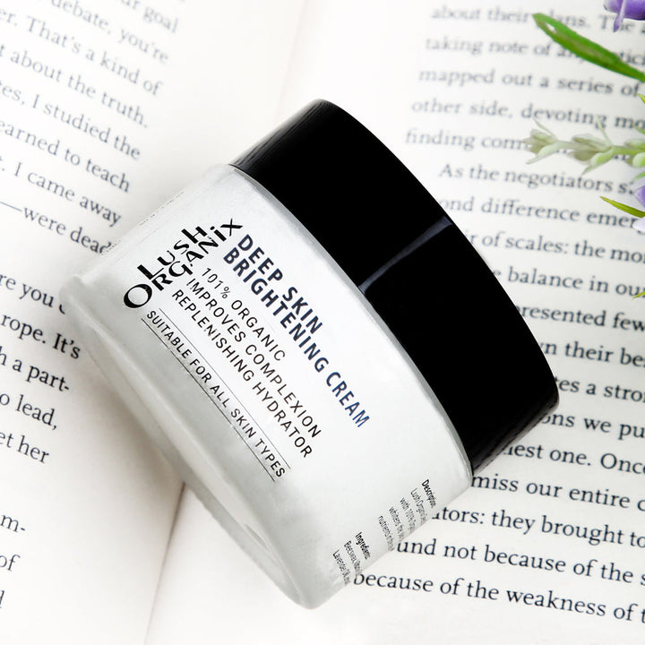 Lush Organix “Deep Skin Brightening Cream” is handmade with 101% organic ingredients with no side effects. It hydrates dull skin & reveal a brighter complexion with visibly improved clarity. See a lit-from-within glow, energize tired skin, & visibly smooth lines & wrinkles. In 1 week, skin looks plumper & smoother. After 4 weeks, skin is visibly tighter & elasticity appears restored