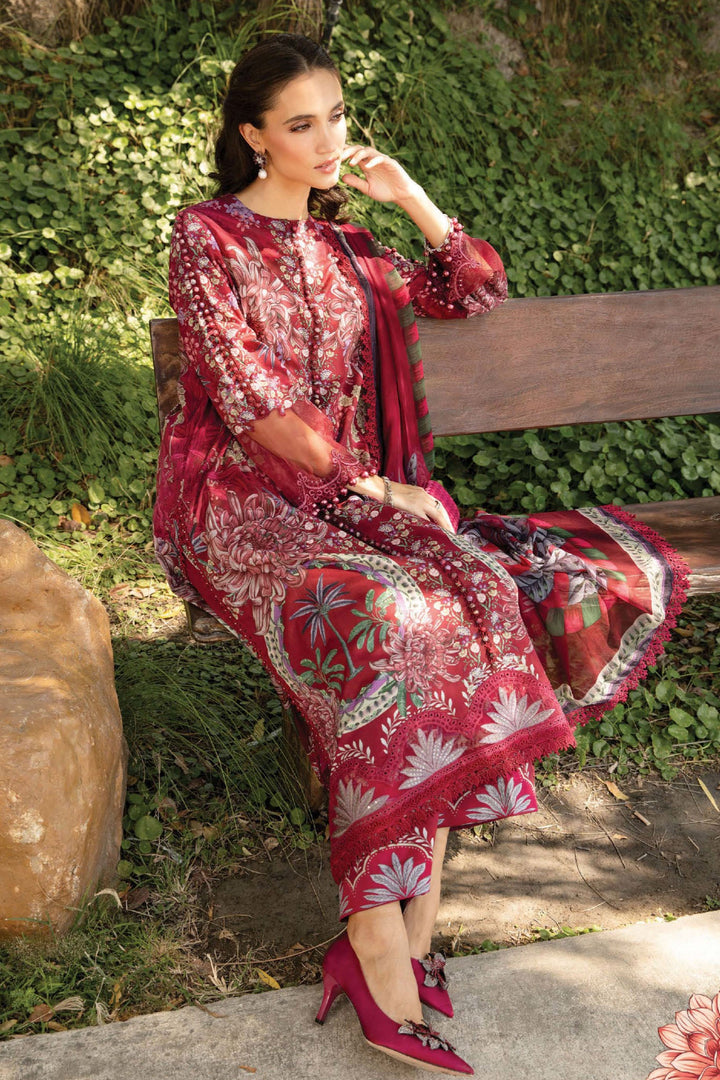 M.Prints By Maria B Unstitched 3 Piece Spring Summer Collection'2025-14-B - Maroon