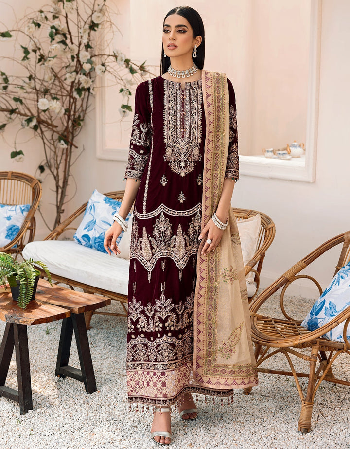 Makhmal By Emaan Adeel Unstitched 3 Piece Velvet Formals Collection'2024-MK-304