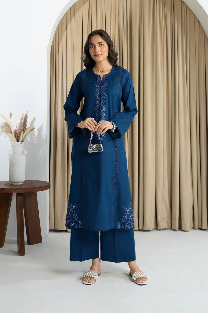 Step into elegance with the Midnight navy blue 2-piece suit, combining a delicately embroidered lawn shirt with sleek plain trousers. This ready-to-wear set exudes sophistication and effortless charm, perfect for those who appreciate refined style in their everyday attire. Designed for both comfort and a polished look, it ensures you maintain a graceful and impeccable presence all day long.