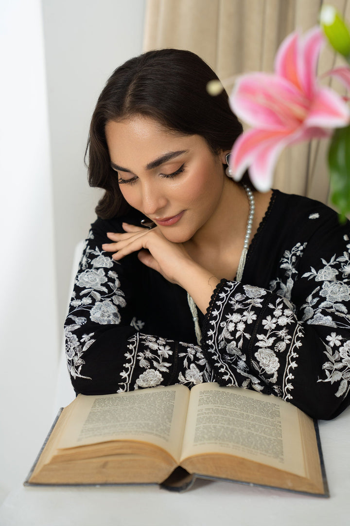 The Onyx two-piece ensemble features a beautifully embroidered black lawn shirt paired with an intricately detailed shalwar, creating a harmonious blend of elegance and comfort. Perfectly suited for both festive celebrations and casual gatherings, this suit exudes understated sophistication while ensuring effortless wearability. A timeless choice for those who appreciate refined craftsmanship and subtle luxury.
