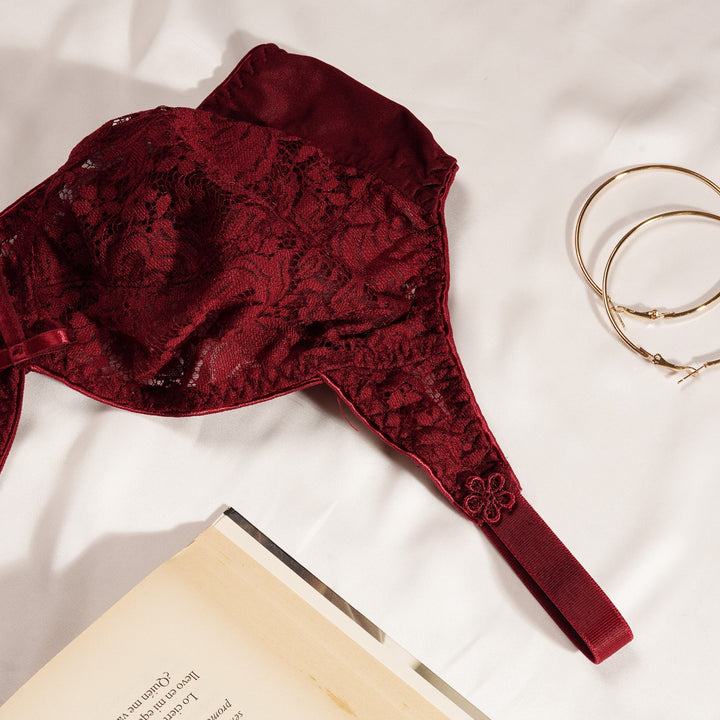 Bebelle - MARVEL Rosette, Soft Lace Cup Unpadded Polyester Jersey Bra - Maroon