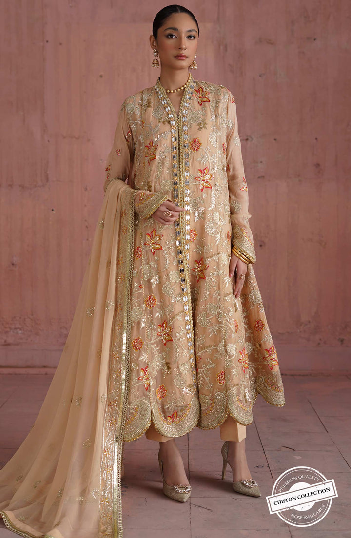 - Embroidered chiffon front kali & sleeves
