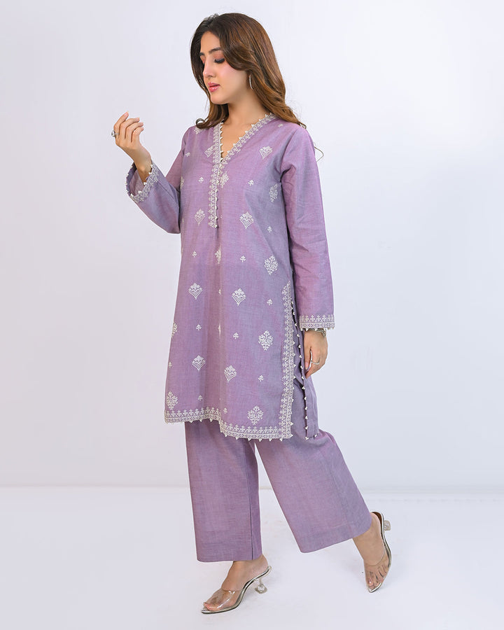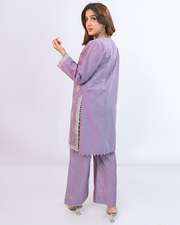 Miorah By Ayla Studio Stitched Solid Embroidered Co-ord - Tamana - Liliac