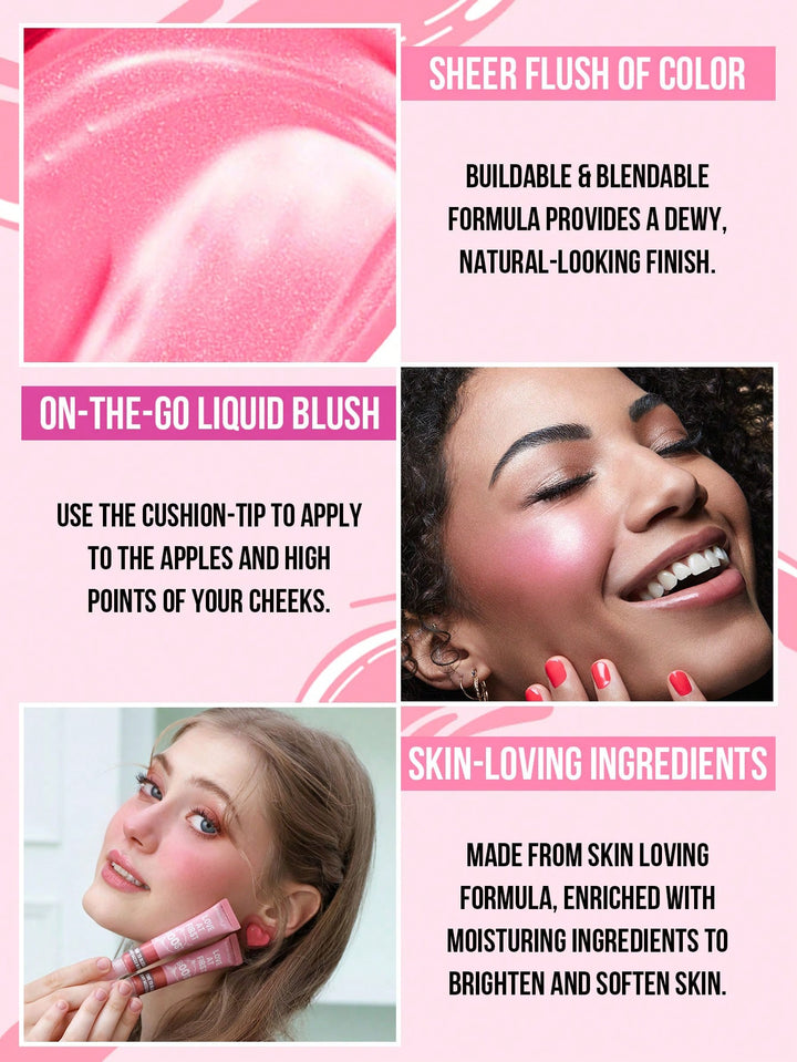 Shein - Missiyn Love At First Boost! Time To Blush Dewy Dazzle Blush, Cushion Tips Liquid Blush, Buildable & Blendable, Sheer Colors, Natural-Looking Finish, Skin Loving Formula, Enriched With Moisturing Ingredients, Brighten And Soften Skin