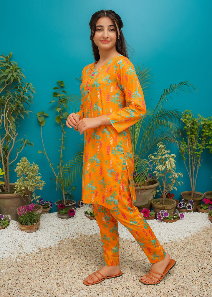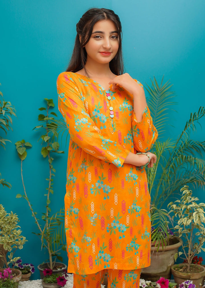 Add a burst of color to your wardrobe with this vibrant orange 2-piece stitched lawn outfit.?