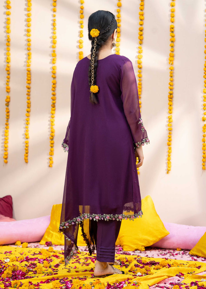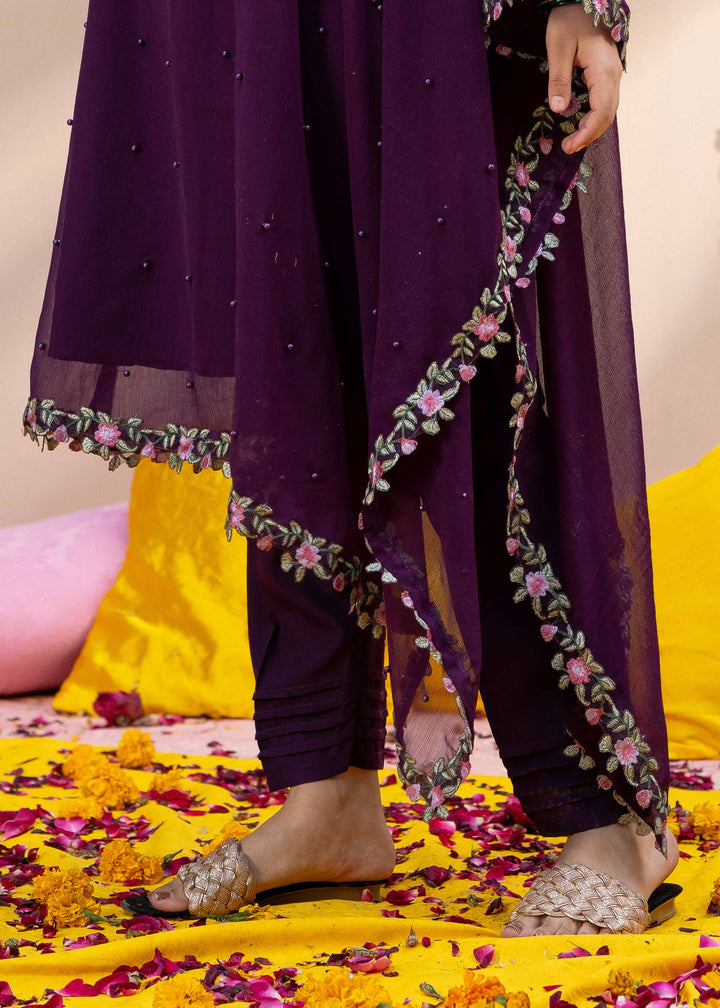 - Detailing: Chiffon shirt with Malai fabric embellished with floral embroidery and pearls paired with trousers & a net dupatta