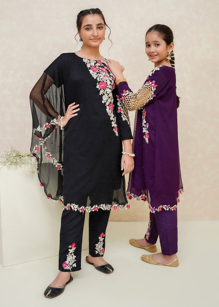 Modest Stitched 3 Piece Pearl Cape Formals Collection'2024-8635-Black