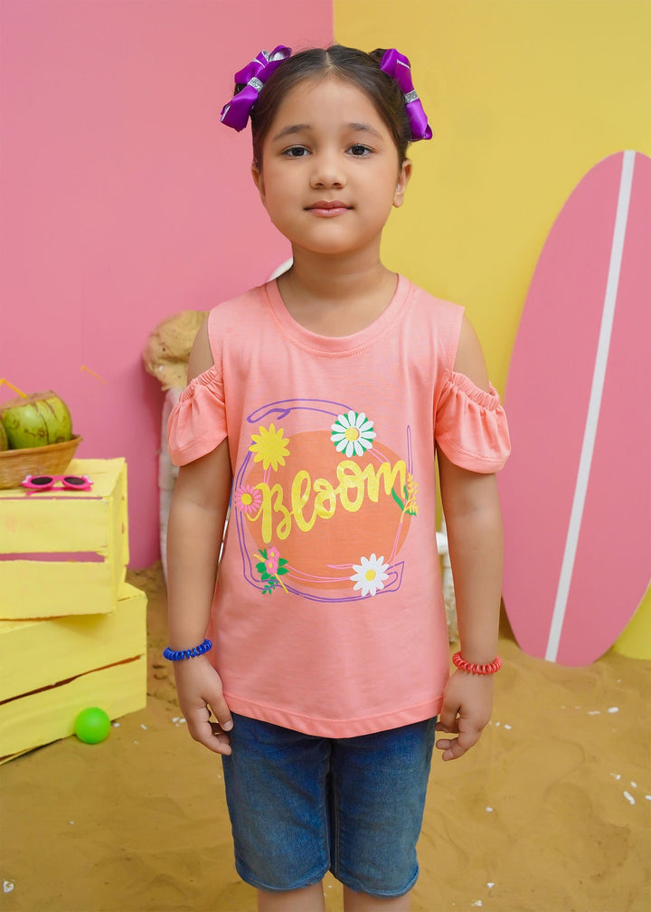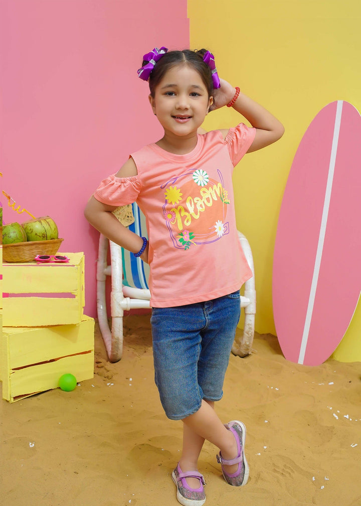 Modest Stitched Summer Kids Collection'2024-Bloom Graphic Tee - Peach