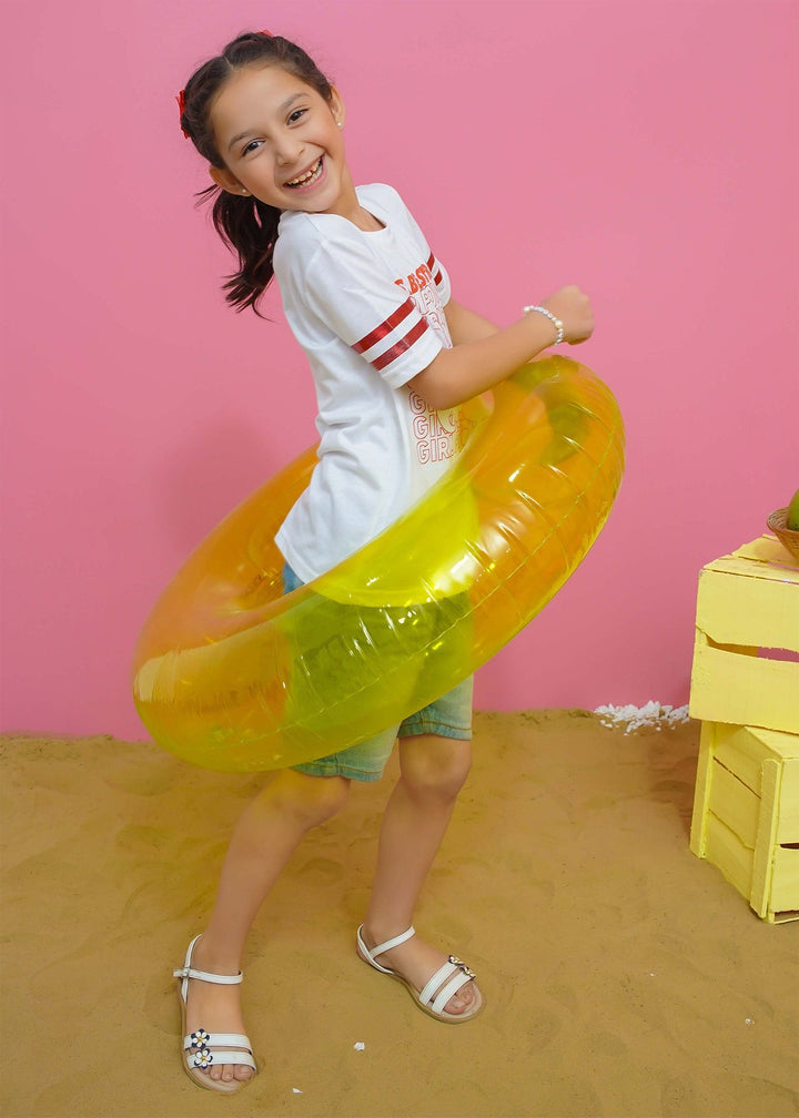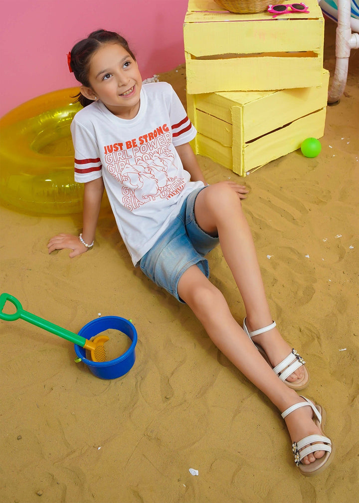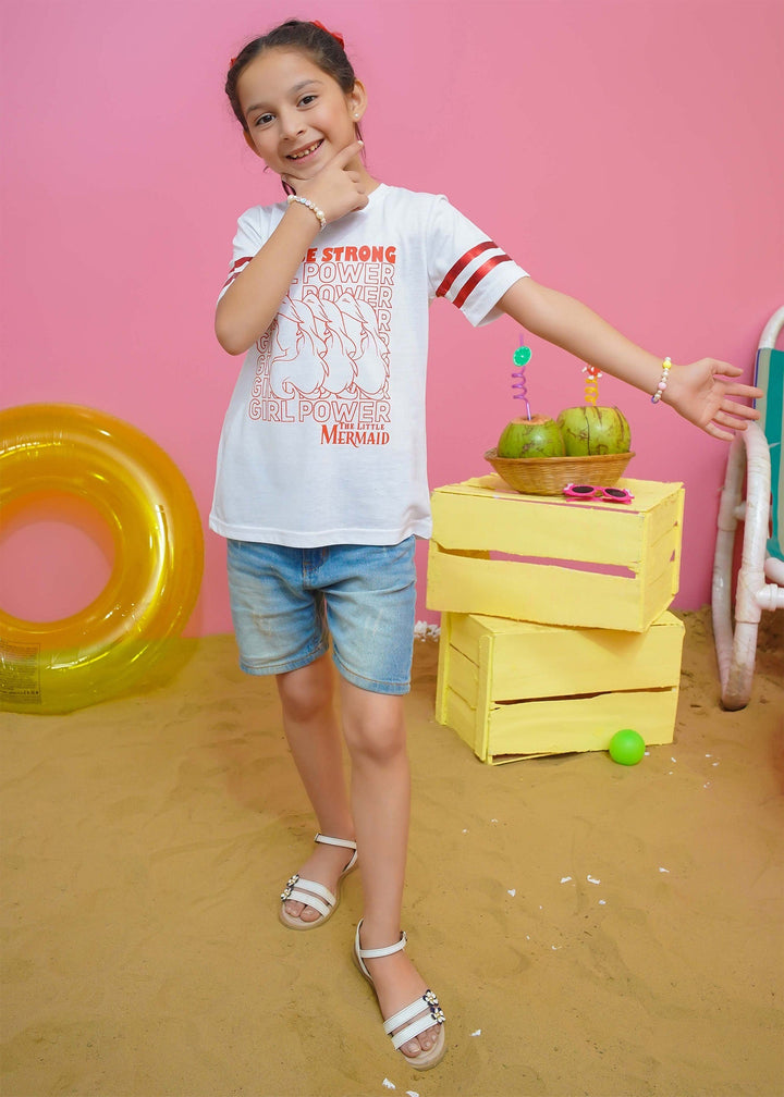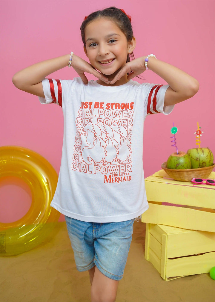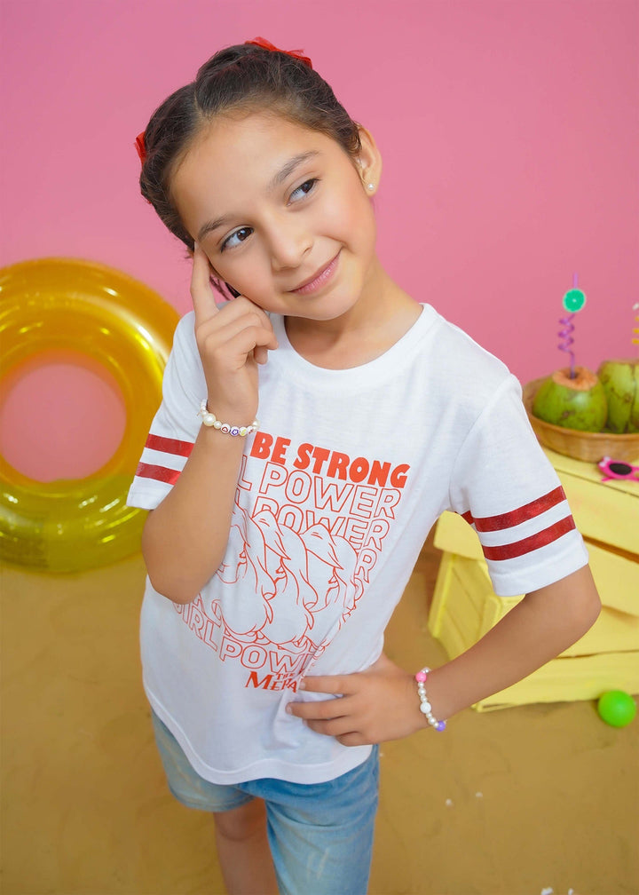 Modest Stitched Summer Kids Collection'2024-Girl Power Graphic Tee - White
