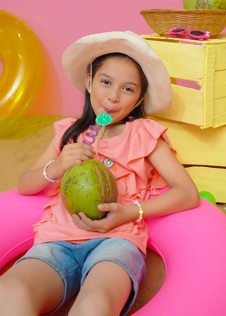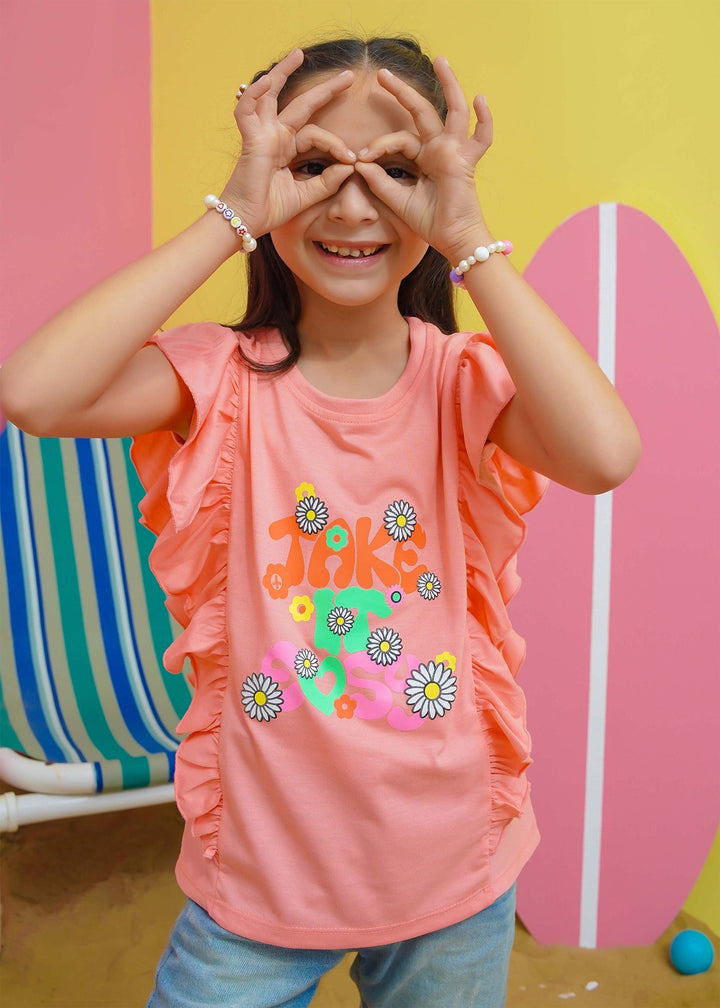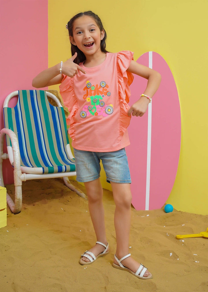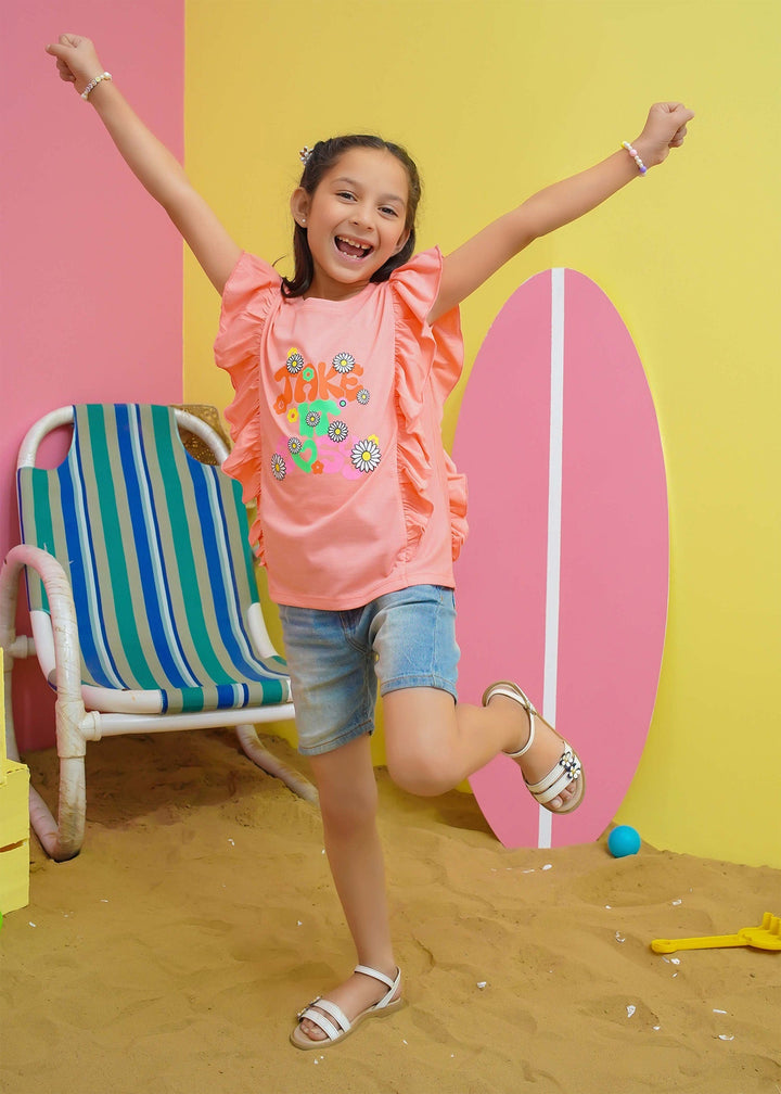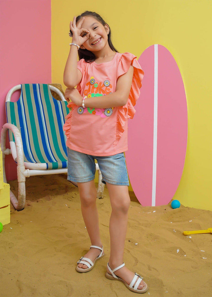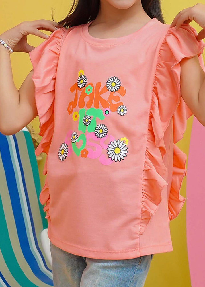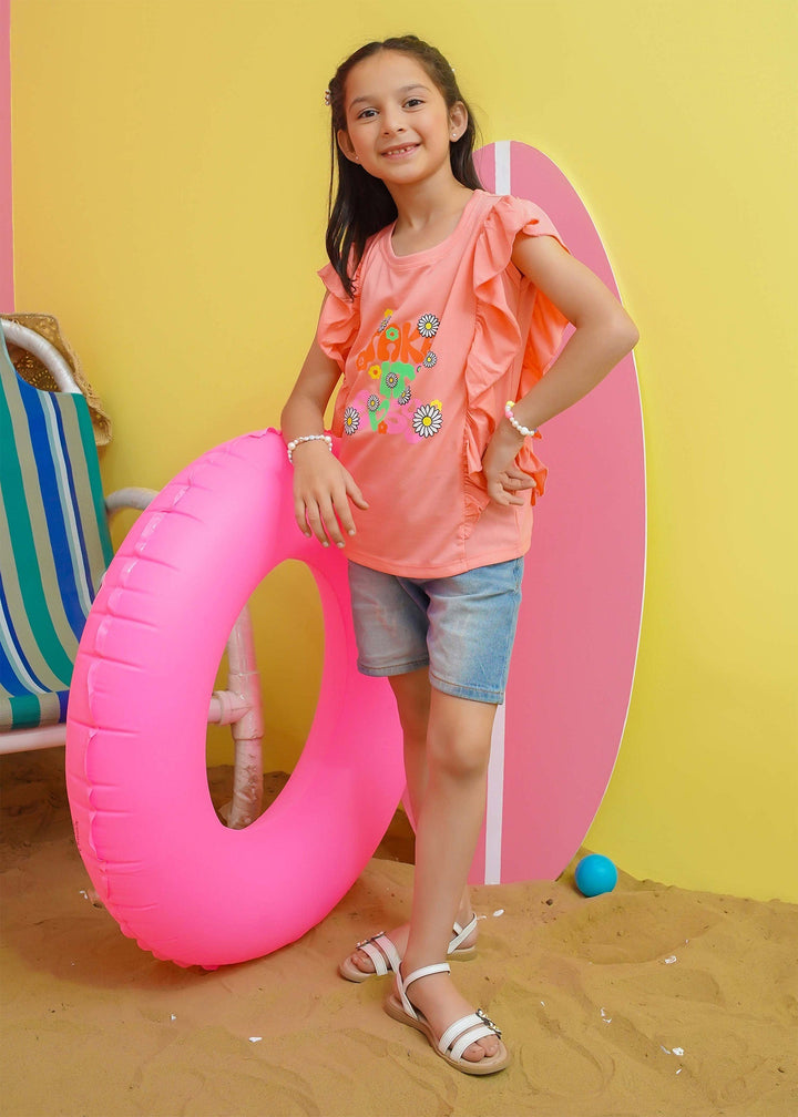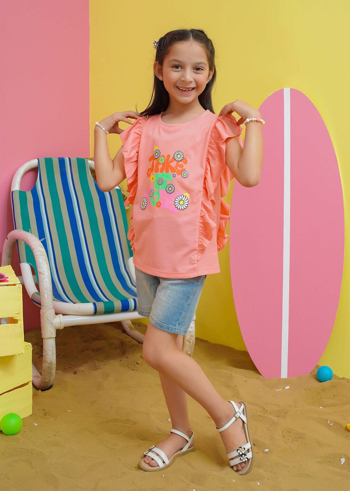 Modest Stitched Summer Kids Collection'2024-Girls Summer Tee - Peach