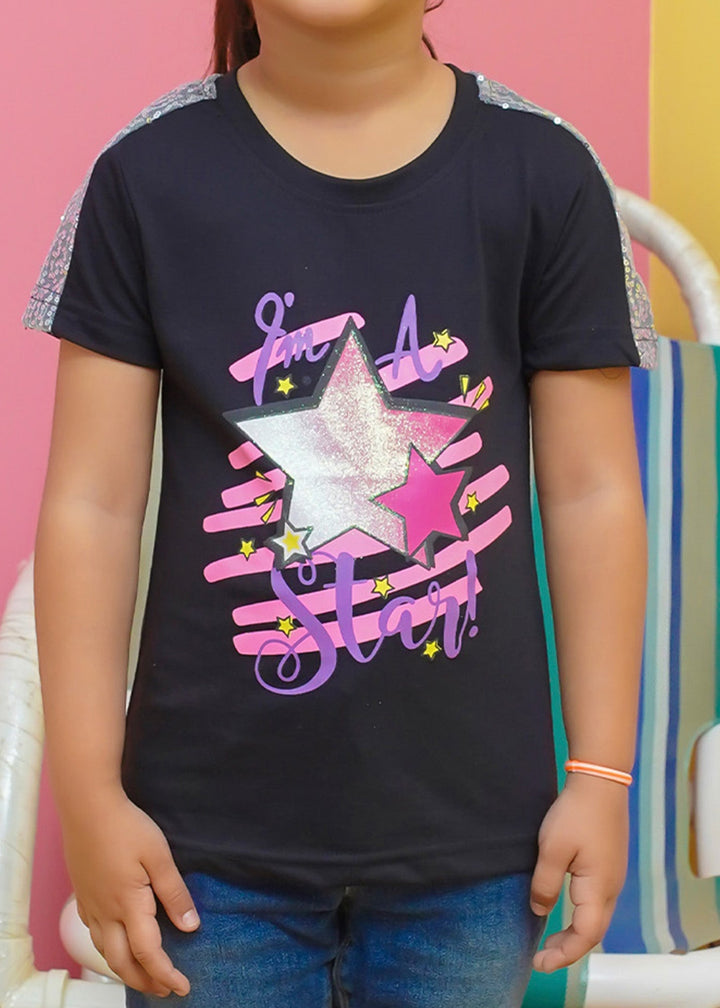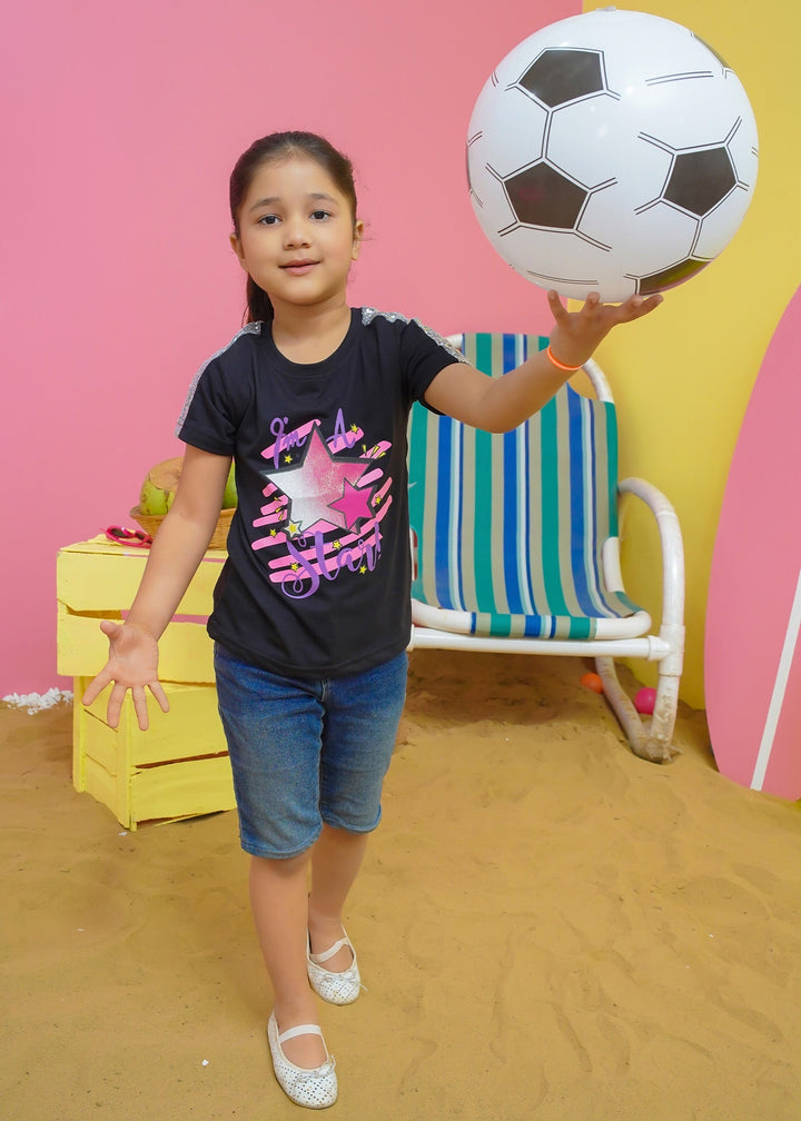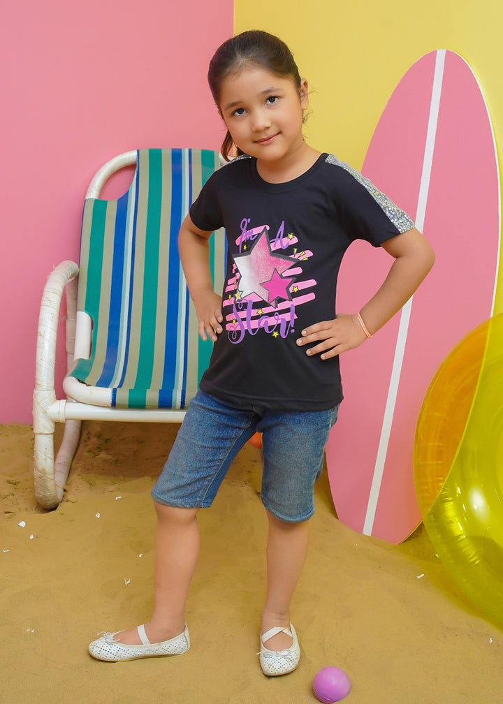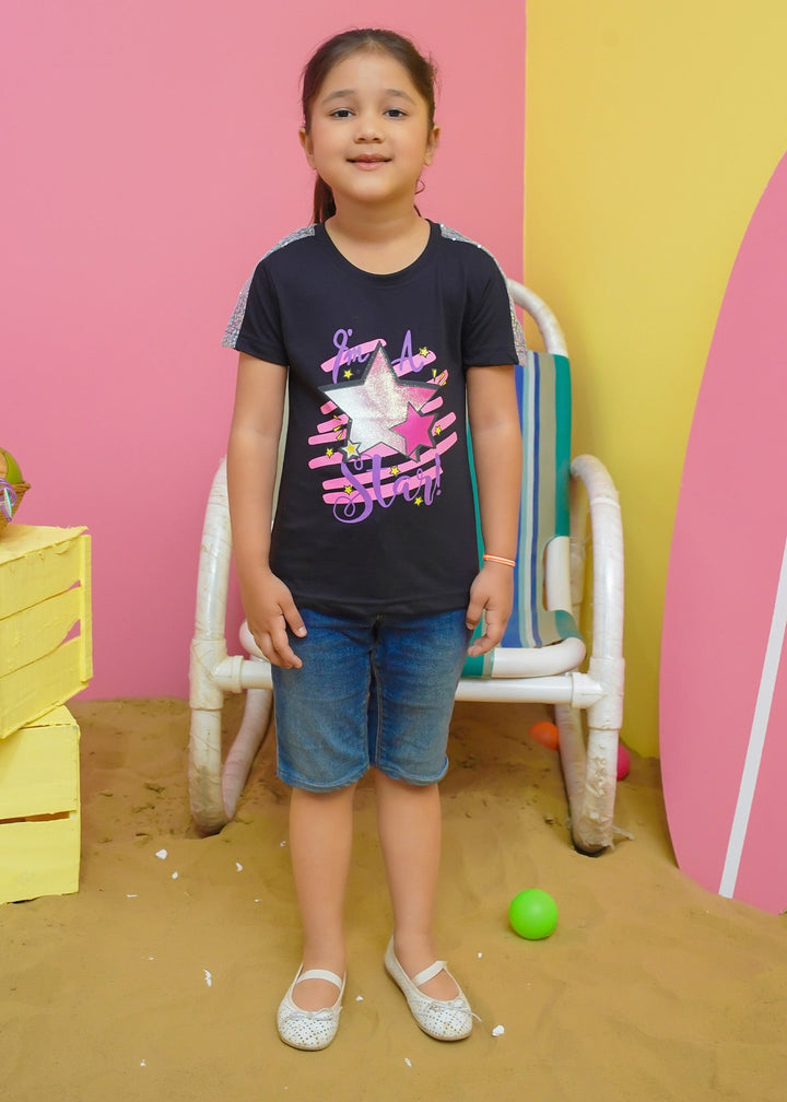 Modest Stitched Summer Kids Collection'2024-Star Graphic Tee - Black