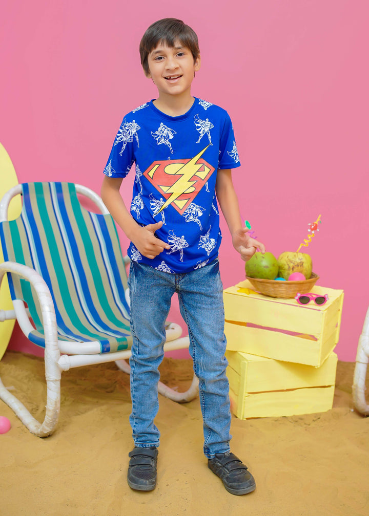 Modest Stitched Summer Kids Collection'2024-Superman Graphic Tee - Blue