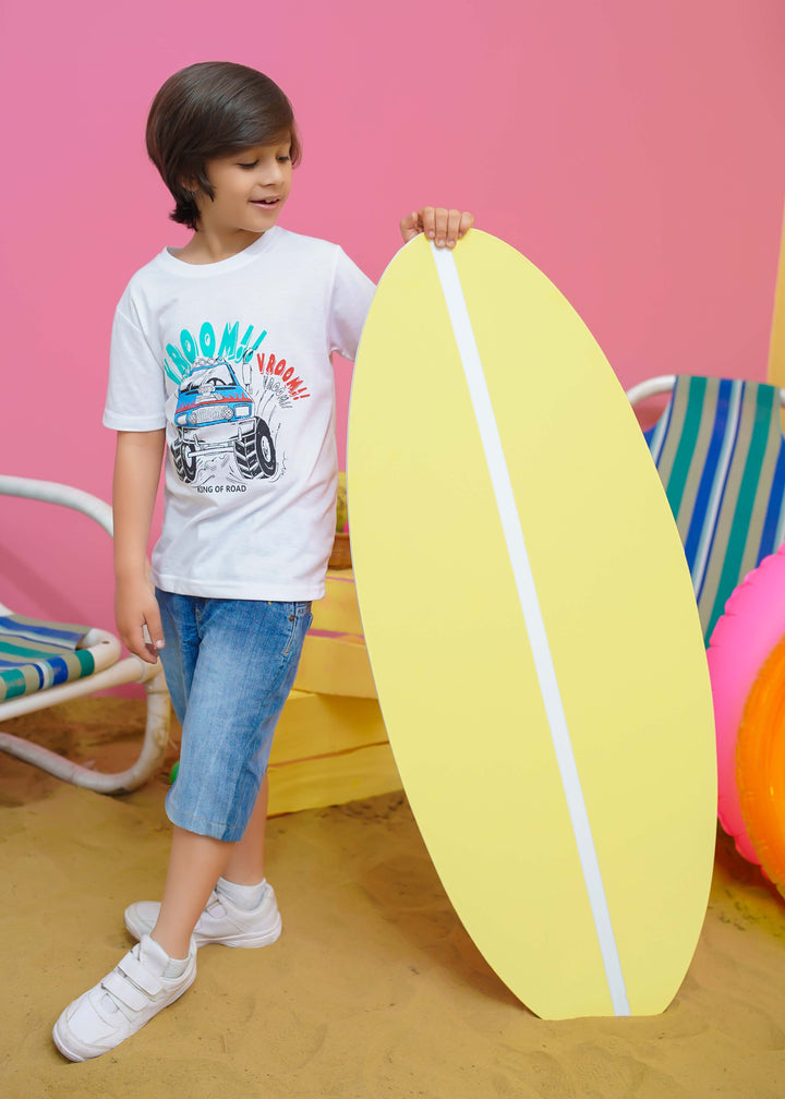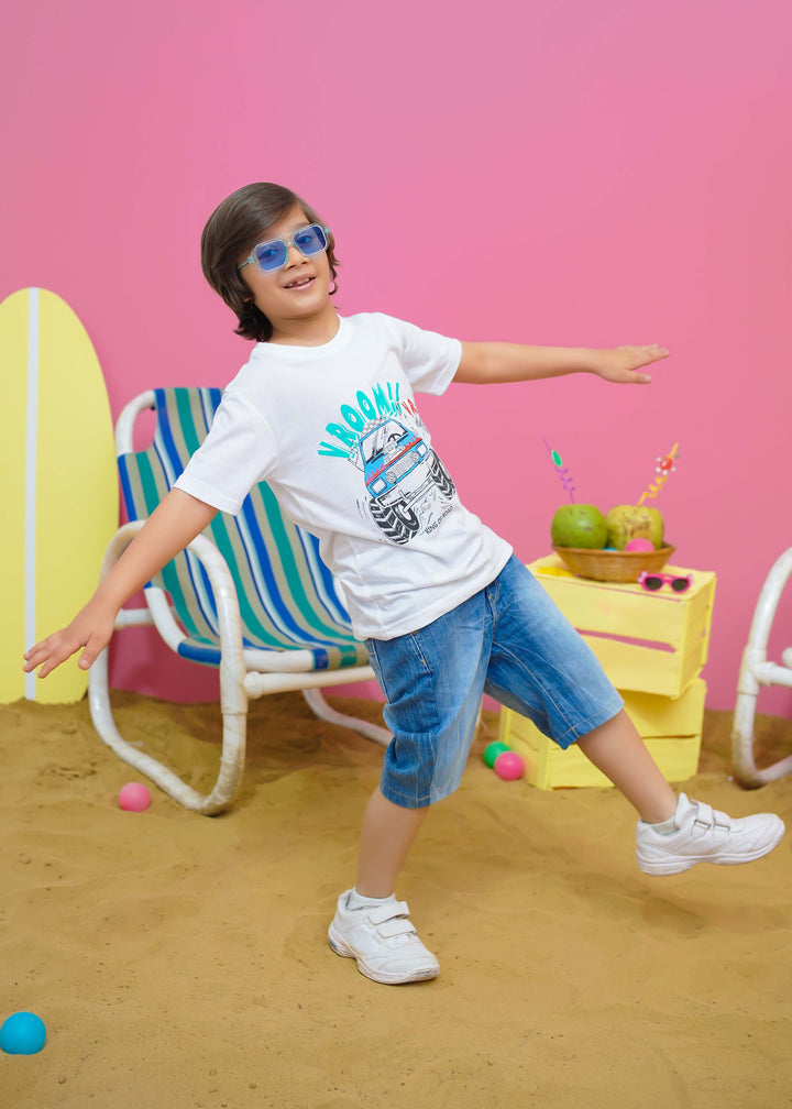 Modest Stitched Summer Kids Collection'2024-Truck Graphic Tee - White