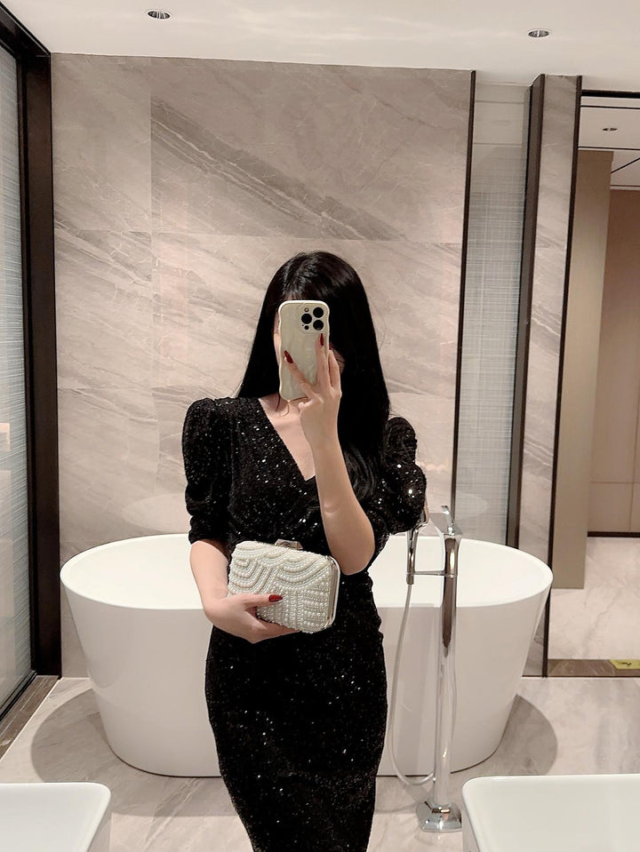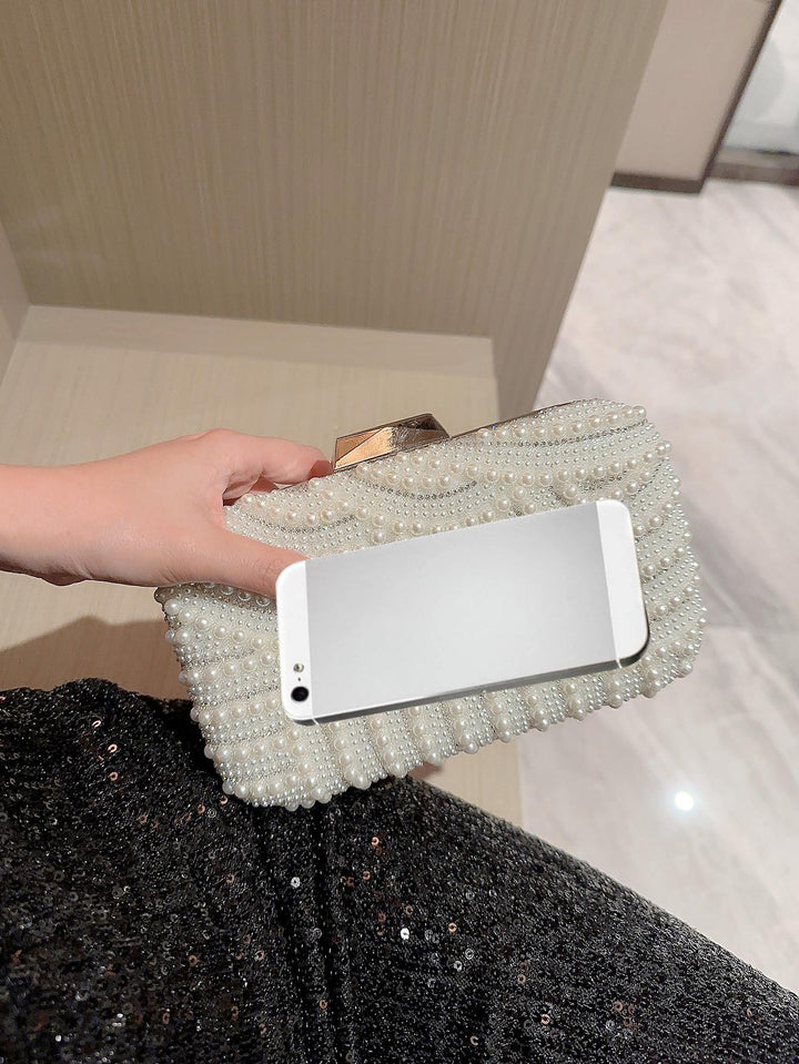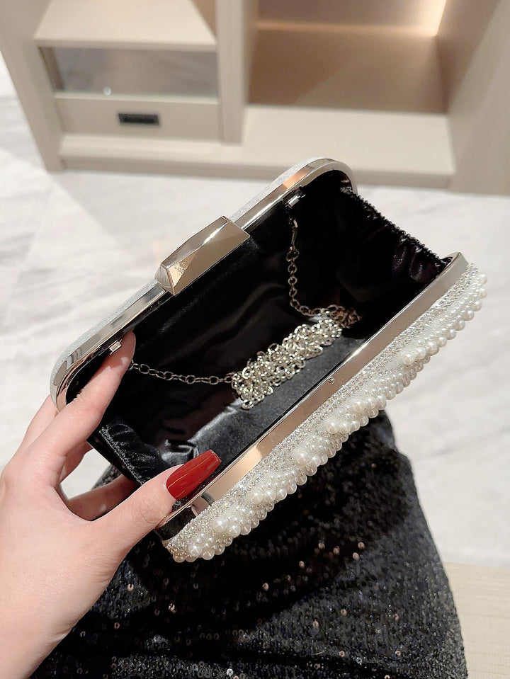 Shein - Moonlit Evebag Glitter Bling, Sequin, Luxury, Shiny Mini Faux Pearl & Rhinestone Decor Box Bag Glamorous Evening Bag, Dinner Bag For Party Girl, Woman, Bride Perfect For Party, Wedding, Prom, Dinner/Banquet, For