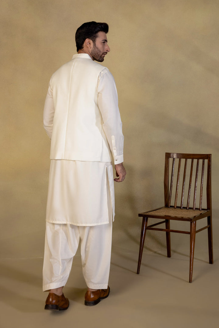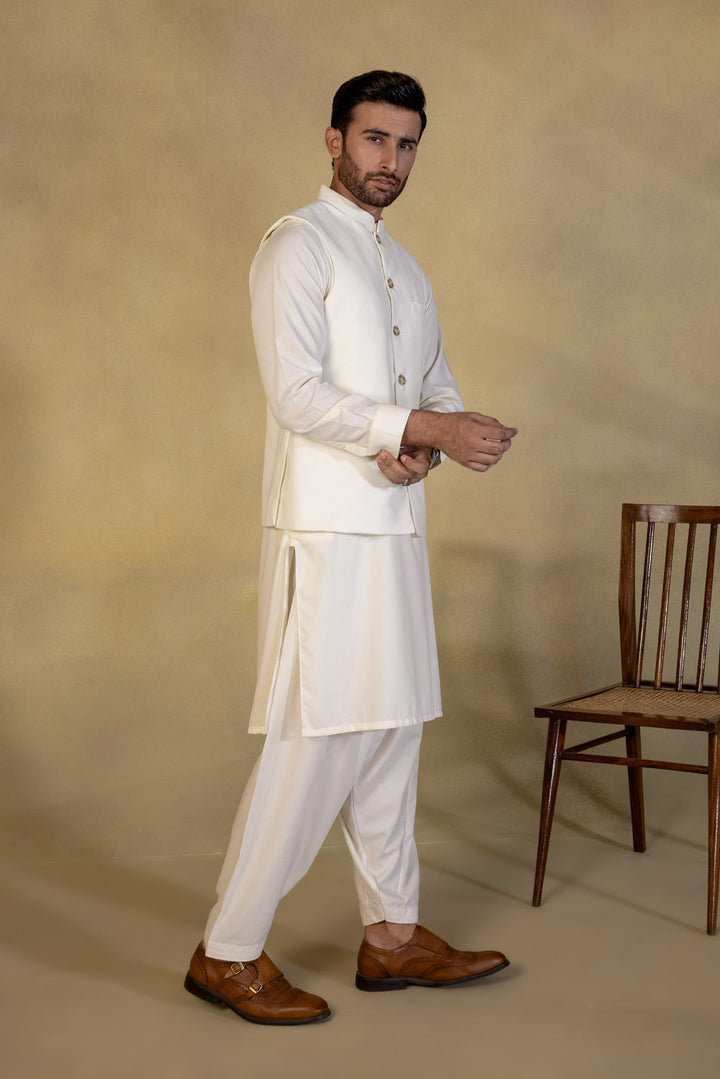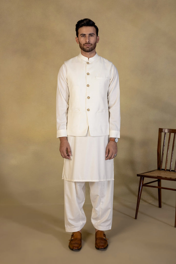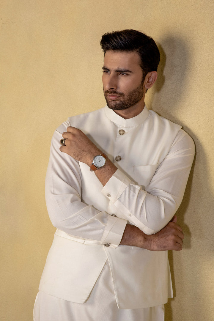 Embody grace in this tropical waistcoat in cream base, a must have for all seasons.