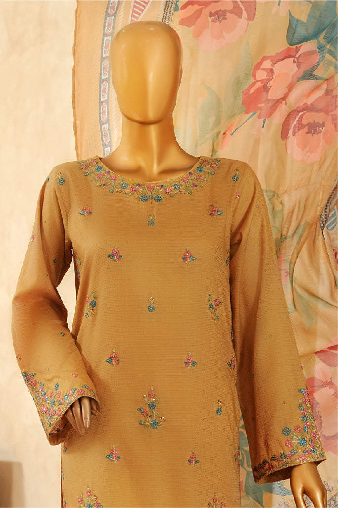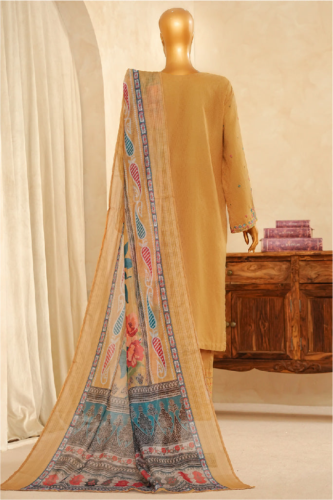 Muse By Hz Stitched 3 Piece Emb Dobby Jacquard Vol-04 Collection'2025-Dej-3P-027-Golden Rod