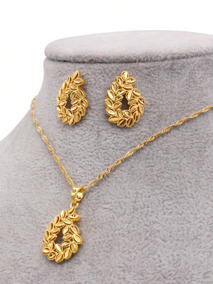 Shein - New Gold Color African Accessories Jewelry Sets Dubai Wedding Bride bridal Necklace/Pendant/Earrings gifts for women set