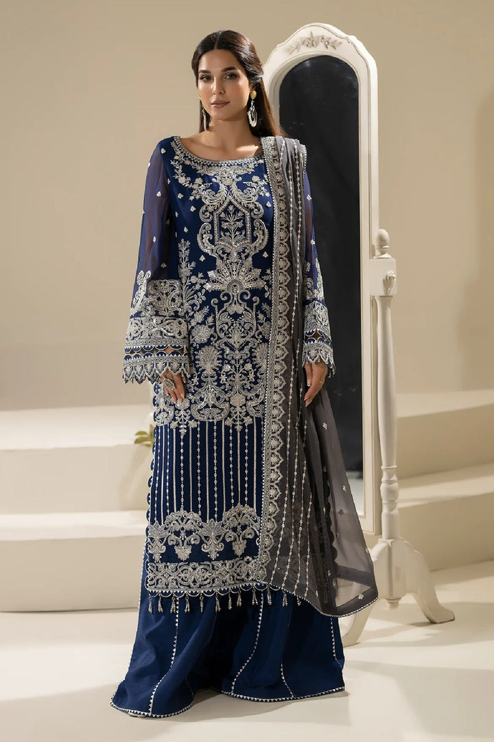 Nisha By Imrozia Unstitched 3 Piece Luxury Chiffon Eid Edit Collection-M-89-Lamiya - Navy Blue