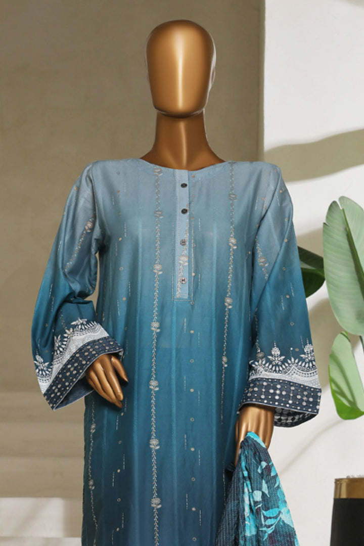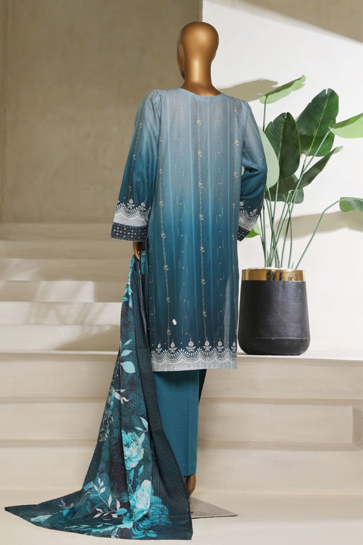 Ombre Damask By HZ Stitched 3 Piece Emb Jacquard Series Collection'2025-PSJ-030-Teal