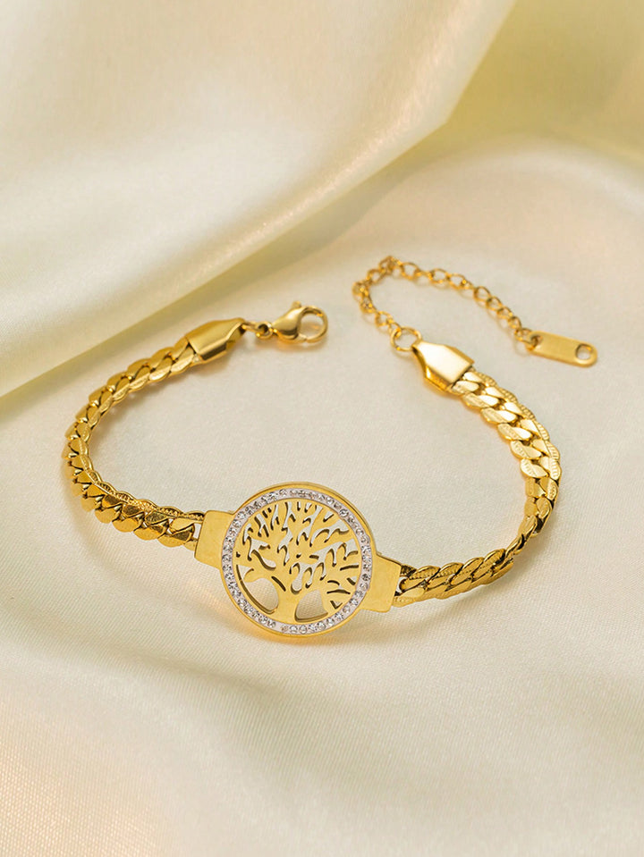Shein - One Piece Gold Stainless Steel Tree Of Life Chain Bracelet For Women, Fashionable Daily Versatile Jewelry Accessories Valentine'S Day Gift