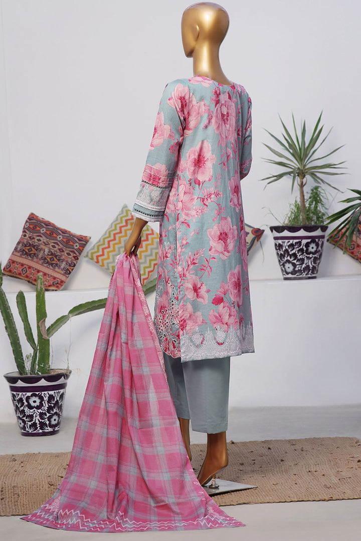 Printkari By HZ Stitched 3 Piece Emb Slub Cambric Collection'2024-CPK-804