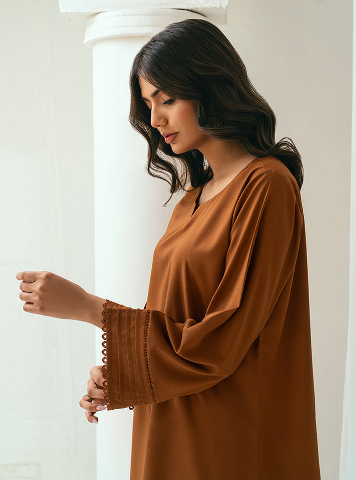 Rangeen Stitched 2 Piece Decisive Co-Ord Set - Brown