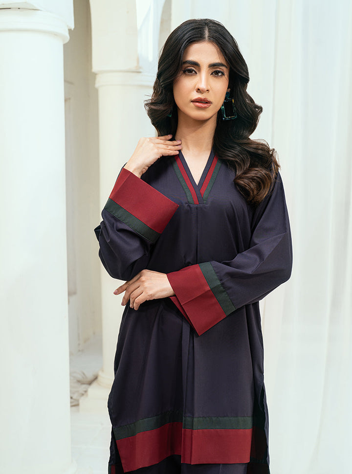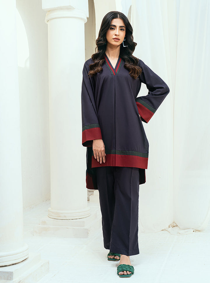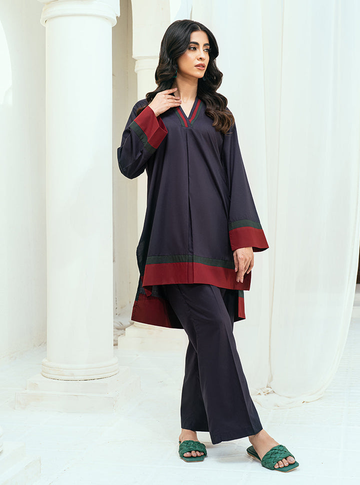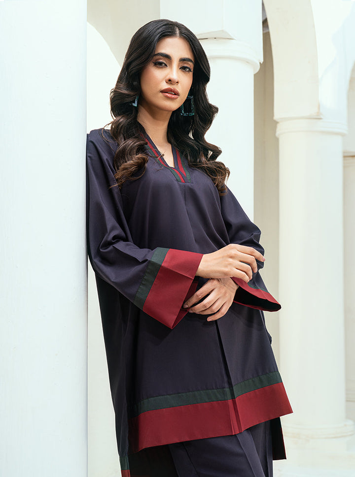 Rangeen Stitched 2 Piece Mulberry Co-Ord Set - Dark Purple